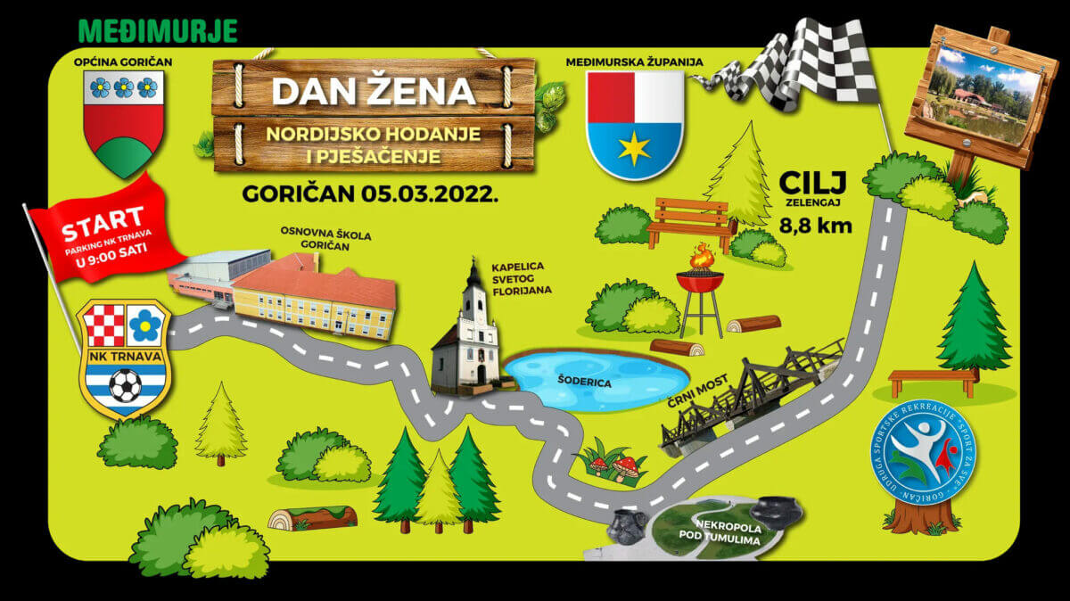 Povodom obilježavanja Međunarodnog dana žena, Udruga Sport za sve Goričan u suradnji s Općinom Goričan organizira u subotu, 5. ožujka 2022. godine 1. Festival sportske rekreacije nordijskim hodanjem i pješačenjem.