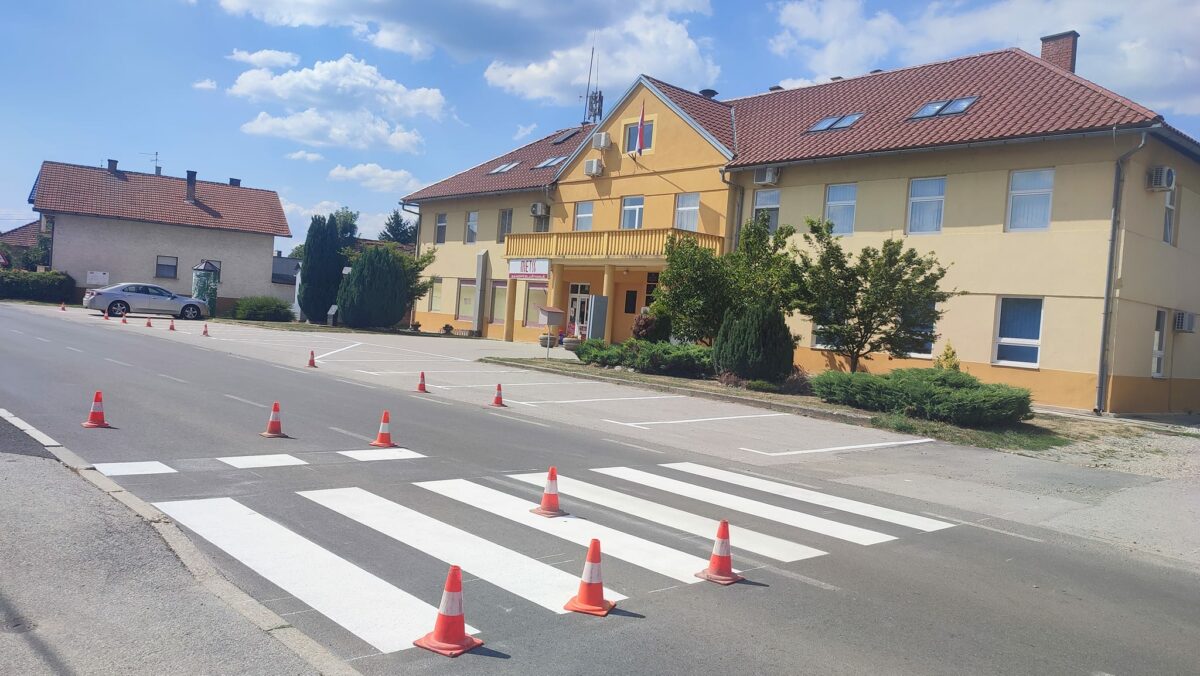 Krajem veljače ove godine Općina Donji Vidovec dala je izraditi elaborat o pješačkom prijelazu ispred Općinske zgrade. Prema zakonu, suglasnost o pješačkom prijelazu dali su nam MUP i Županijska uprava za ceste Međimurske županije. Nakon toga se je prišlo iscrtavanju prijelaza i parkirnih mjesta, a što je obavljeno jučer.