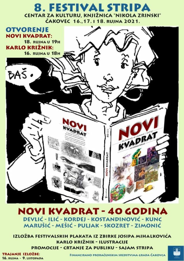 Tri su rujanska dana u Čakovcu rezervirana za strip. Ovogodišnji, osmi festival stripa u organizaciji udruge STRIPoblaČAK, u suradnji s Centrom za kulturu Čakovec i Knjižnicom Nikola Zrinski u Čakovcu, predstavlja 16., 17. i 18. rujna čakovečkoj publici djela autora Novog kvadrata, ilustracije Karla Križnika i festivalske plakate iz zbirke Josipa Mihalkovića.