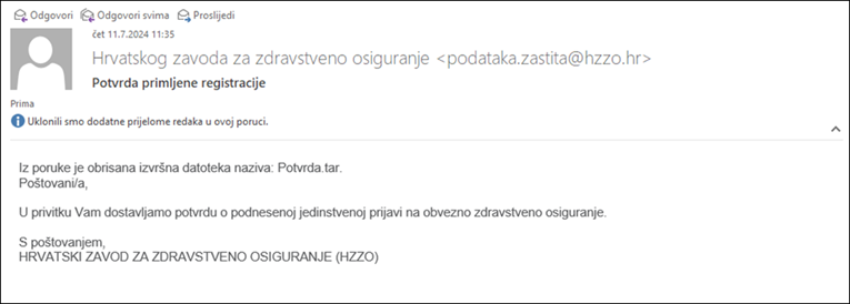 “Upozoravamo građane da mailovi koje zaprime s adrese podataka.zastita@hzzo.hr nemaju veze s HZZO-om kao i da HZZO obavijesti sličnog sadržaja šalje isključivo putem sustava e-Građani. Molimo građane da izbrišu mailove zaprimljene sa spomenute, u našem sustavu nepostojeće adrese, da na poruku ne odgovaraju niti da otvaraju privitke”, kažu.