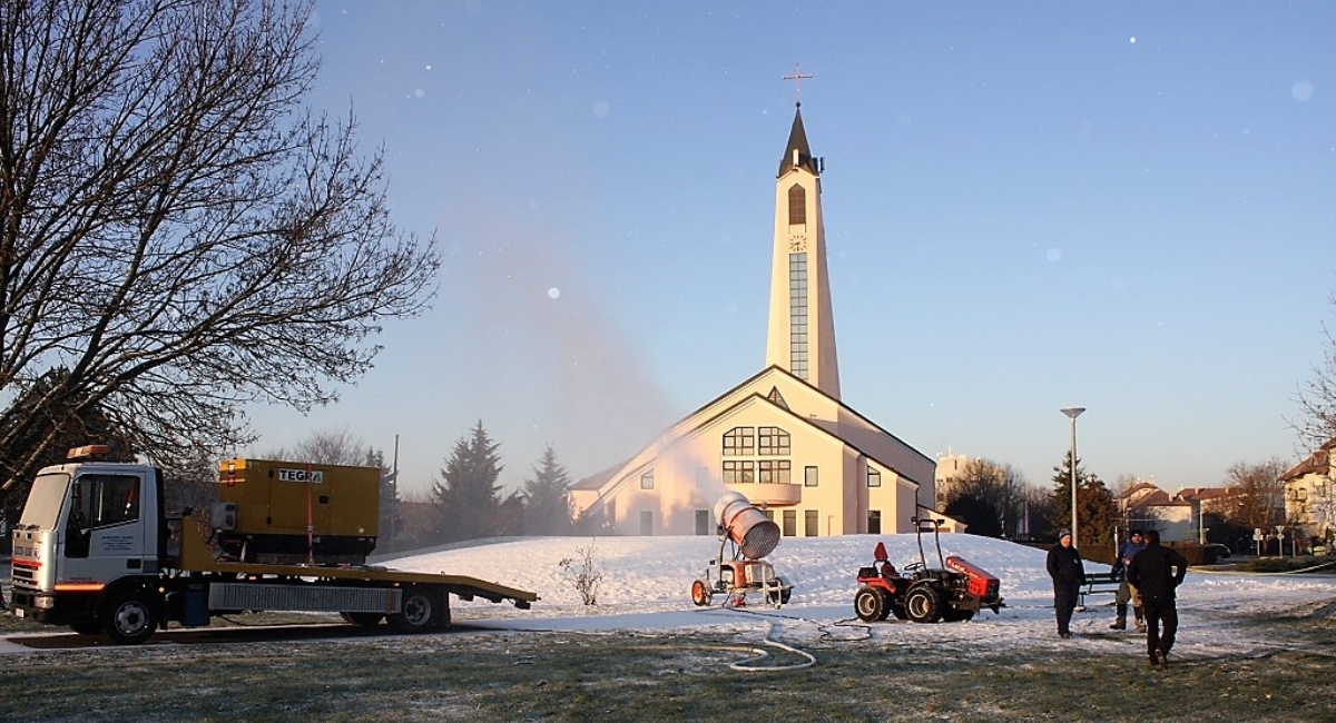 Tijekom noći s petka na subotu, djelatnici Gradskog poduzeća „EKOM“, uređajem za proizvodnju umjetnog snijega, zasniježiti će brežuljak na čakovečkom Jugu. Tako bi do jutra trebao biti stvoren snježni pokrivač debljine nekoliko centimetara, dovoljan za sanjkanje. Ako vremenski uvjeti to dopuste, top za umjetni snijeg preselit će se i u Perivoj Zrinskih, kako bi se zasniježilo i veliko gradsko sanjkalište, ono podno zidina Starog grada. U planu je i stvaranje umjetnog snijega na sanjkalištu u Ivanovcu.