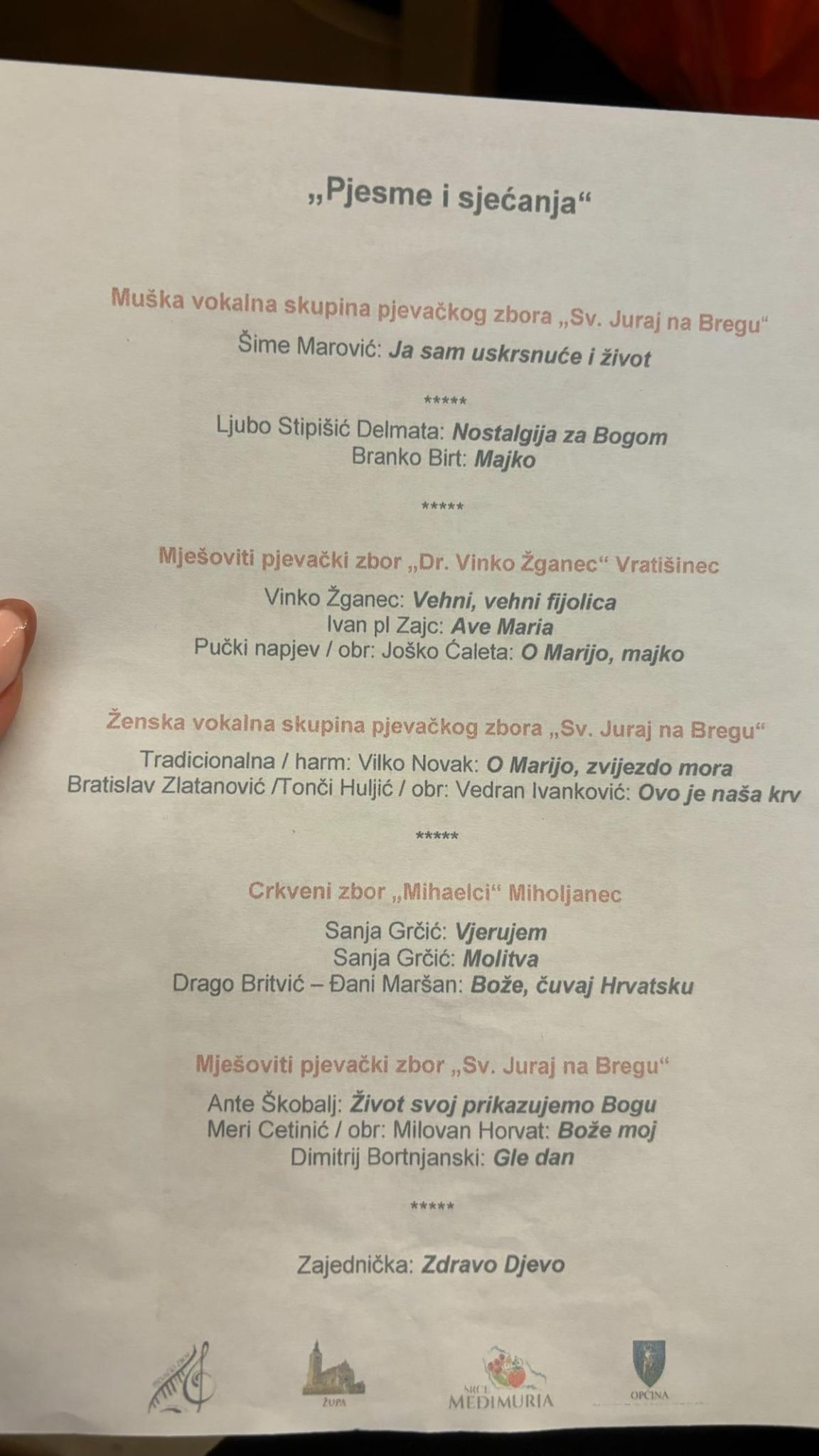 -Ne tako daleko u prošlosti, mnogi mladi i stari, znani i neznani, s vjerom u Boga, dali su svoj život. U našim mislima, srcima, pjesmama i sjećanjima, oni žive i danas i živjet će dok se ih god netko ima sjetiti. Zato ovaj koncert nosi naziv “Pjesme i sjećanja,” jer pjesma pruža mogućnost izražavanja osjećajan i raspoloženja te prenosi određenu emociju i riječi.