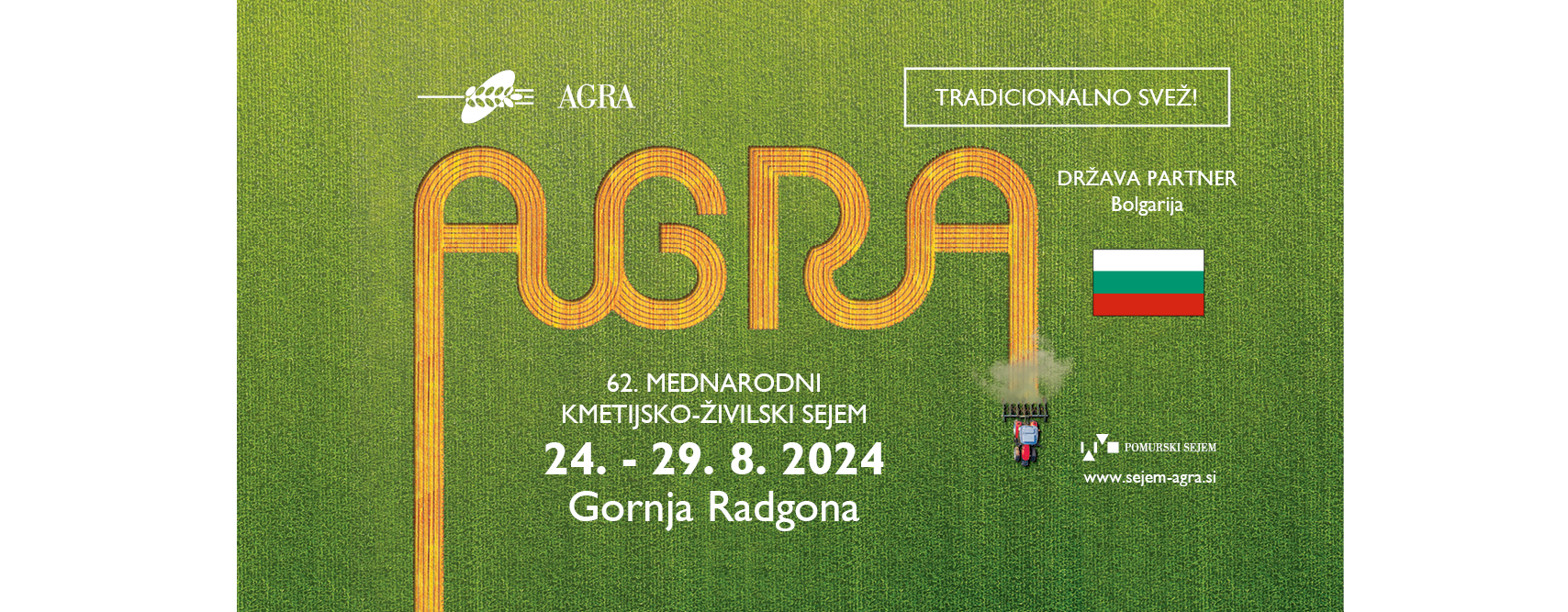 Pomurski sejem u Gornjoj Radgoni od 24. do 29. kolovoza organizira tradicionalni 62. međunarodni poljoprivredno-prehrambeni sajam Agra. Izvršni direktor i član Uprave Pomurskog sejma Boris Erjavec danas je na konferenciji za novinare u čakovečkom Hotelu Park najavio sudjelovanje 1720 izlagača iz 35 zemalja na ukupno 70.800 četvornih metara izložbenog prostora.