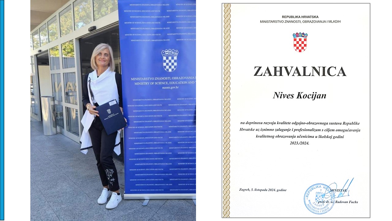 Povodom Svjetskog dana učitelja, Ministarstvo znanosti, obrazovanja i mladih tradicionalno je nagradilo najbolje odgojno-obrazovne djelatnike. Povjerenstvo za nagrađivanje odabralo je 513 najuspješnijih u školskoj godini 2023./2024.