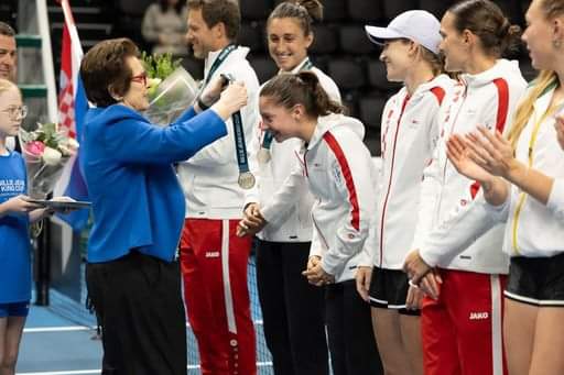 Naše tenisačice i stručno vodstvo imali su zadovoljstvo i čast da im, nakon finalnog dvoboja, medalje uruči legendarna Billie Jean King po kojoj cijelo natjecanje nosi i ime.