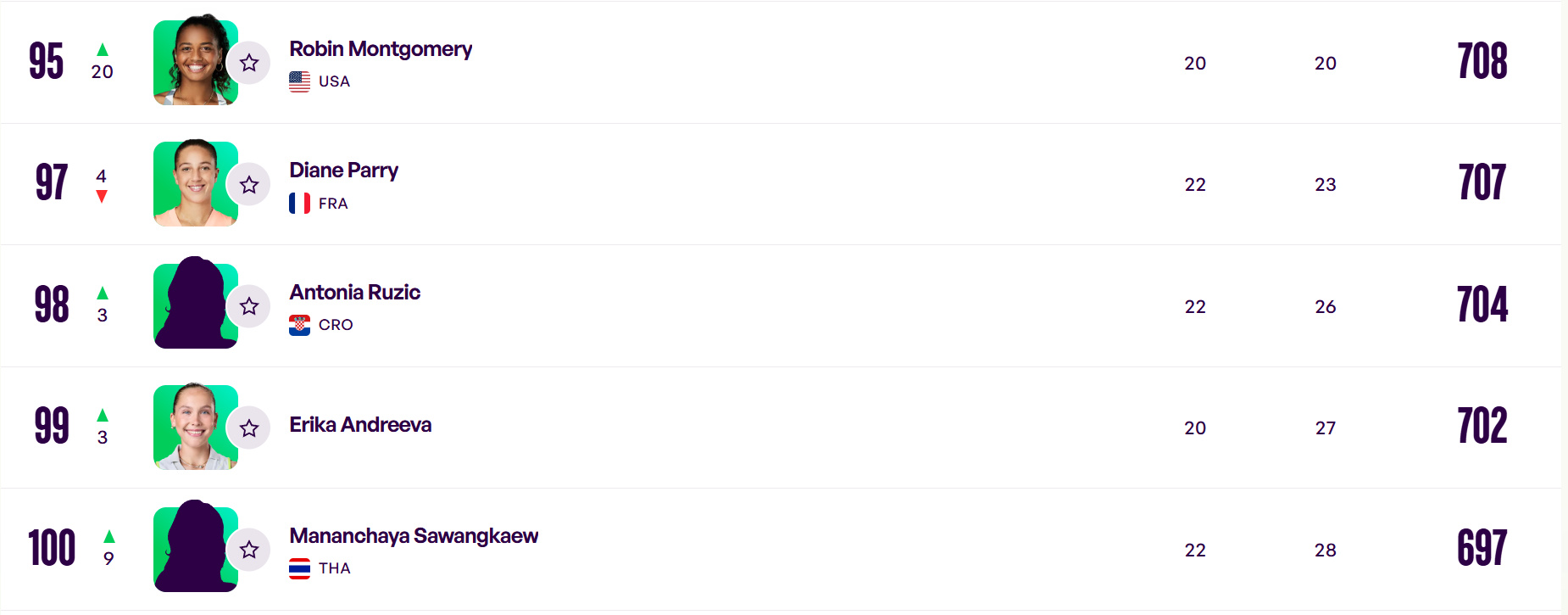 Kao što smo prije nekoliko dana najavili, Antonia Rožić je ušla u društvo stotinu najboljih tenisačica svijeta. Na danas objavljenoj službenoj WTA rang-listi nalazi se na 98.mjestu sa 704 bodova. Time je i prije polovice sezone ostvarila svoj najveći cilj. Tako je postala tek 14. hrvatska tenisačica od samostalnosti kojoj je to uspjelo. Uz nju, od međimurskih igračica, takvo postignuće pošlo je za rukom još samo Ivani Lisjak koja je u lipnju 2006.godine bila na 95.mjestu, ali se zbog ozljeda nažalost nije predugo zadržala u Top 100.