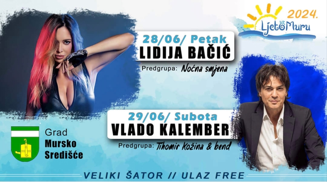Treći nam vikend Ljeta uz Muru donosi velike koncerte Lidije Bačić i Vlade Kalembera na Šetnici svete Barbare, pod šatorom, čemu će kao i prošli vikend prethoditi Murski wine fest.