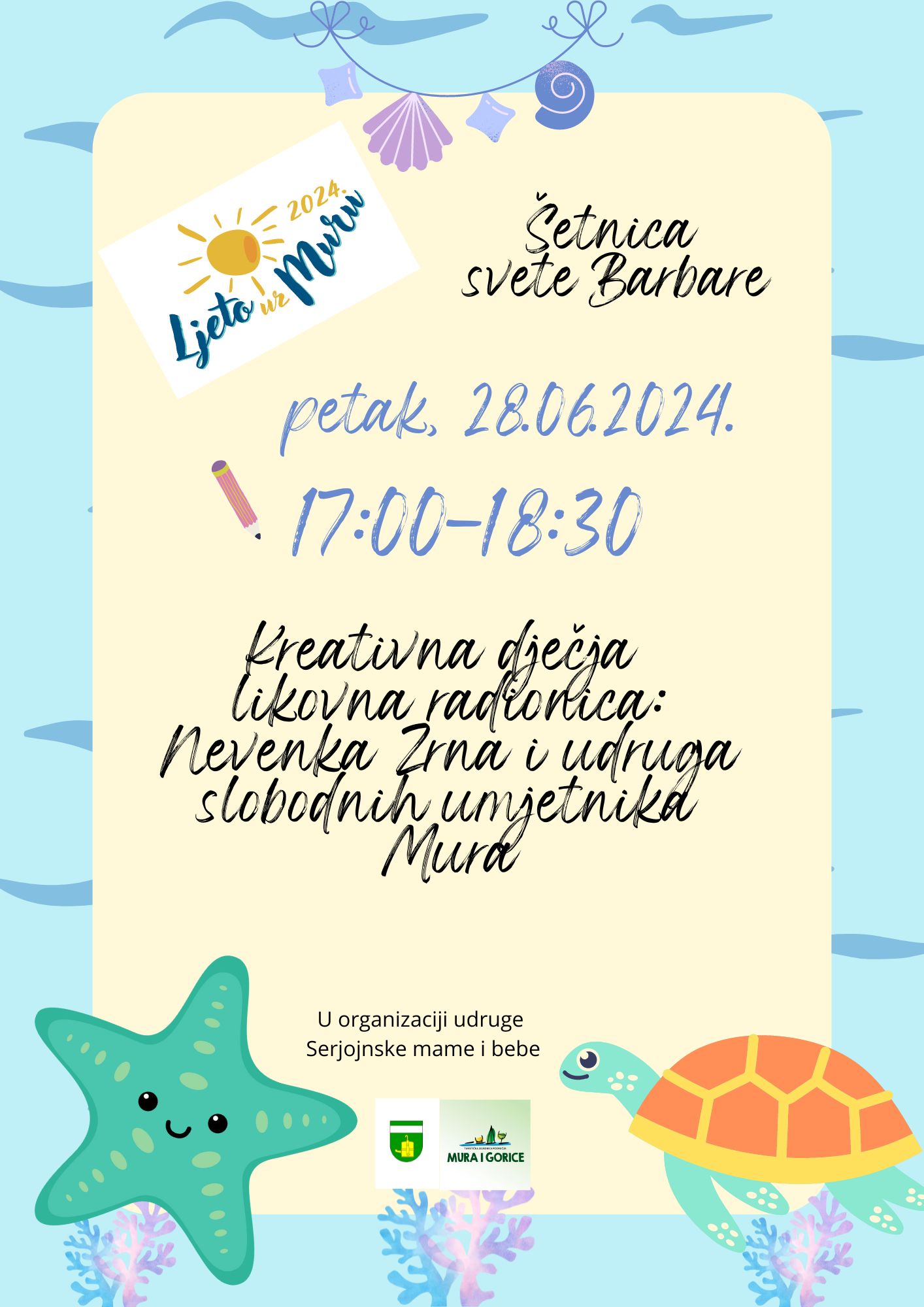17.00 –Ljetni festival mašte – Kreativna dječja likovna radionica: Nevenka Zrna i udruga slobodnih umjetnika Mura –  Šetnica svete Barbare