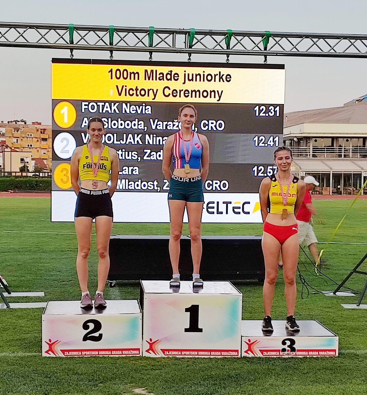 Nevia Fotak, mlada atletičarka iz Čakovca, ostvarila je fantastičan uspjeh. Postala je državna prvakinja u sprintu pobijedivši na 100 metara s rezultatom 12,31 sekundu, te na 200 metara s izvanrednih 24,51 sekundu što je samo 11 stotinki slabije od norme za Europsko prvenstvo za juniore. Uz to je osvojila i zlato u skoku u dalj sa skokom od točno 6 metara, te je s 3 pojedinačna zlata najuspješnija natjecateljica Prvenstva.