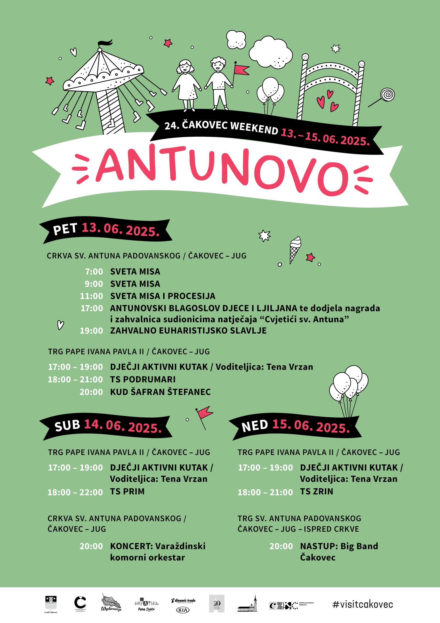 Turistička zajednica grada Čakovca u suradnji s Gradom Čakovcem i Župom sv. Antuna Padovanskog Čakovec, organizira manifestaciju “Antunovsko proštenje”, koja će se na jugu Čakovca održati od 13. do 15. lipnja. 2025. godine.