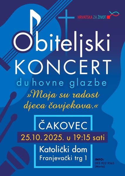 Inicijativa 40 dana za život Čakovec organizira prvi Obiteljski koncert duhovne glazbe, koji će se održati u subotu, 25. listopada, u Katoličkom domu u Čakovcu, s početkom u 19:15 sati, nakon večernje mise.