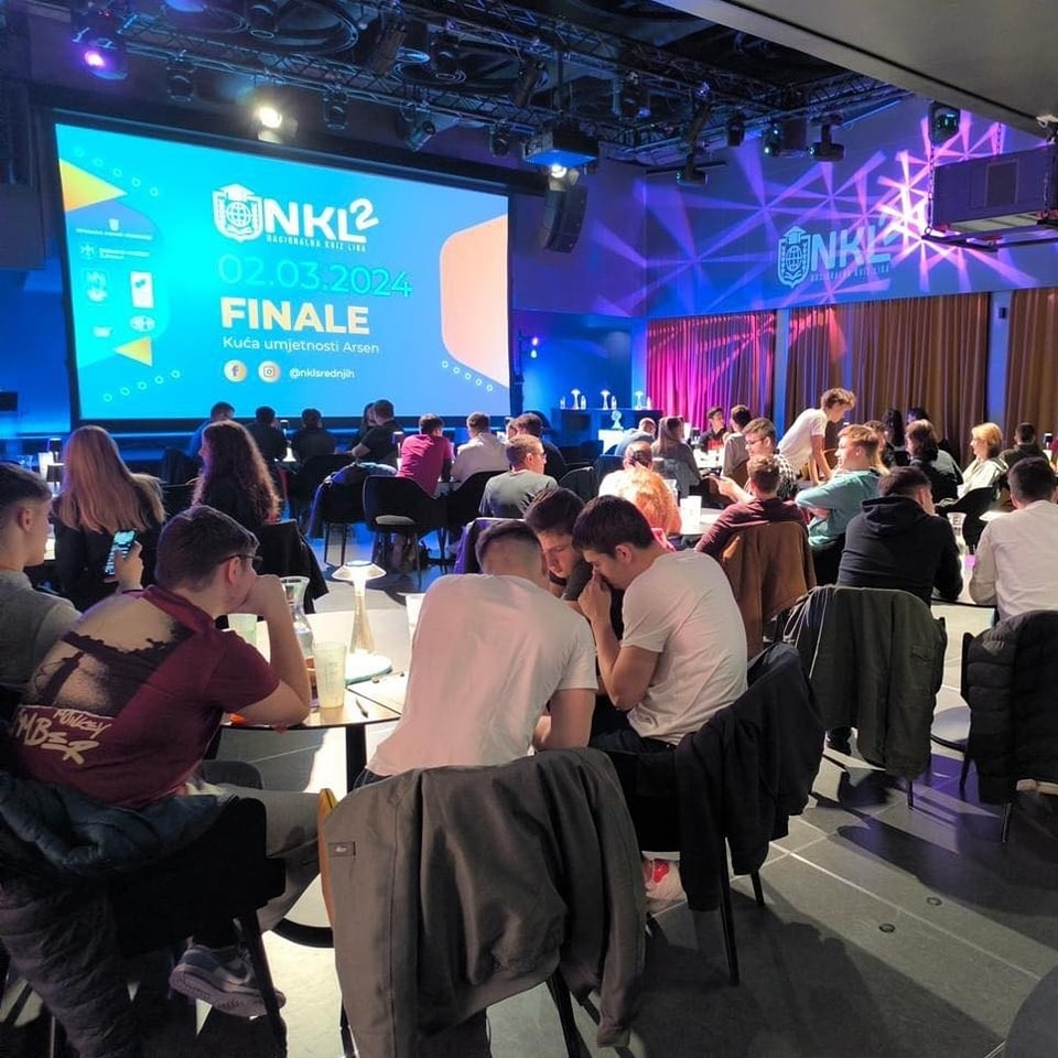 Dana 2. ožujka 2024. godine u Kući umjetnosti Arsen u Šibeniku održano je finale Nacionalne kviz lige srednjih škola. U prvom kolu lige, svoj plasman u finale pokušalo je izboriti 289 ekipa iz cijele Hrvatske, a u konačnici se u finalu borilo dvadeset najboljih ekipa. Među njima bile su ekipe iz Zagreba, Šibenika, Đakova, Karlovca, Rijeke, Osijeka, Paga, Hvara, Posušja, Zadra, Korenice, Novske, Pazina, Bjelovara, Požege, Slavonskog Broda te jedna iz Čakovca.