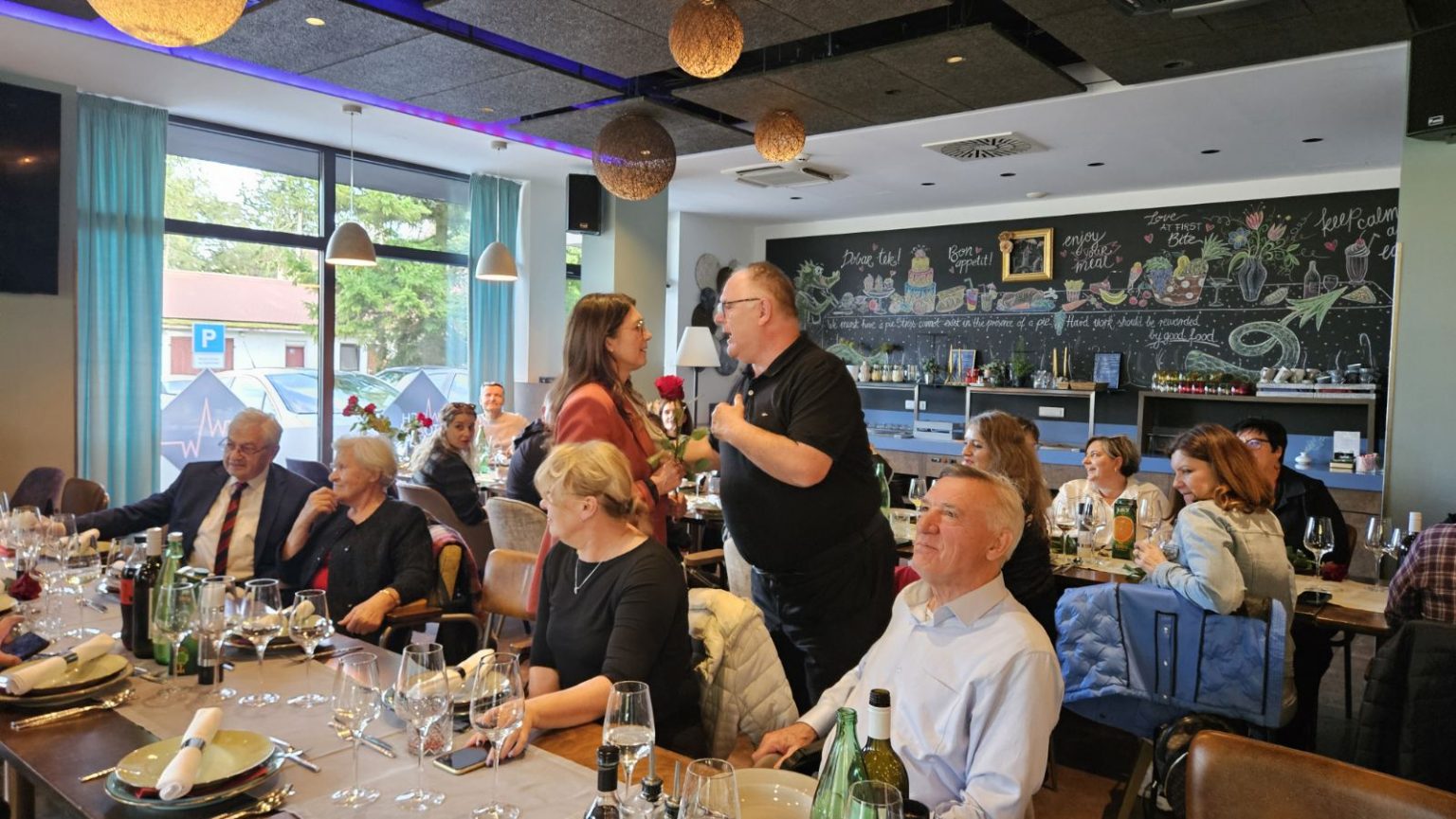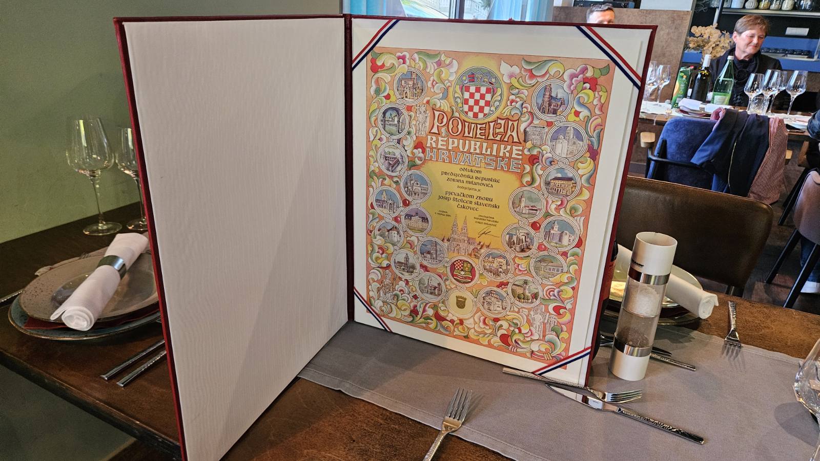 Druženje i proslava dobivenog visokog državnog priznanja nastavljena je u Čakovcu, u hotelu Castellum, gdje su članovima jednog od najboljih hrvatskih amaterskih pjevačkih zborova čestitke uputili i župan Međimurske županije Matija Posavec i gradonačelnica Grada Čakovca Ljerka Cividini.