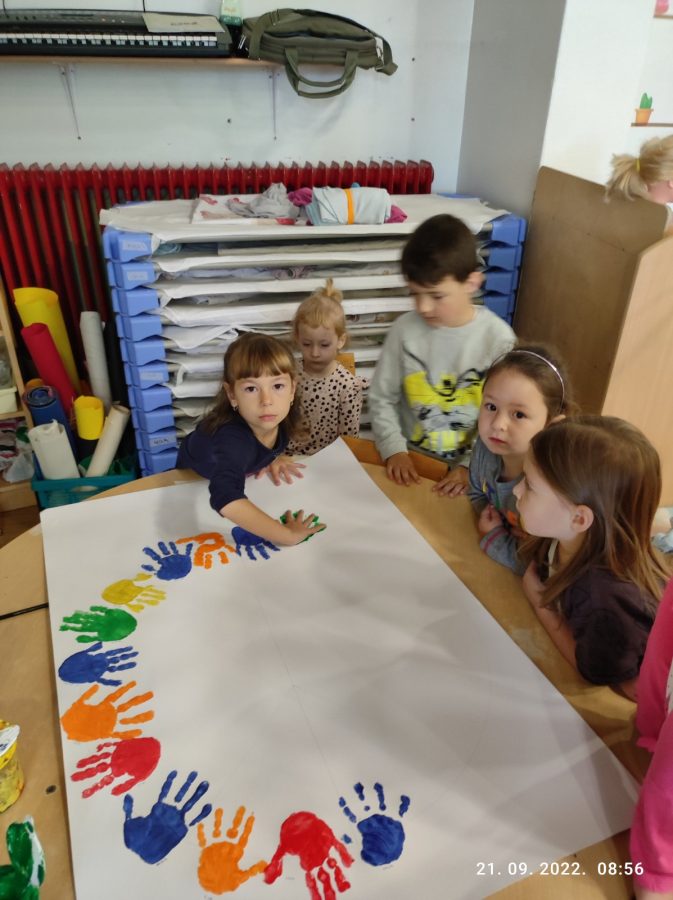 Vođeni tom idejom, djeca iz Montessori skupine „Perlice“ i engleske skupine „Gumbići“, Dječjeg vrtića Cvrčak, Područnog odjela Maslačak prigodno su ovog tjedna obilježila taj važan datum. Svojim su ručicama izradila znak mira na velikim plakatima i stavila ih na izložbu u hodnik. Razgovarali su i o tome čemu služe ruke te izrađivali narukvice prijateljstva. Uz pjesmice „Kad bi svi“ i „Sing peace around the world“ su zaplesala i zapjevala za vedro i veselo raspoloženje.