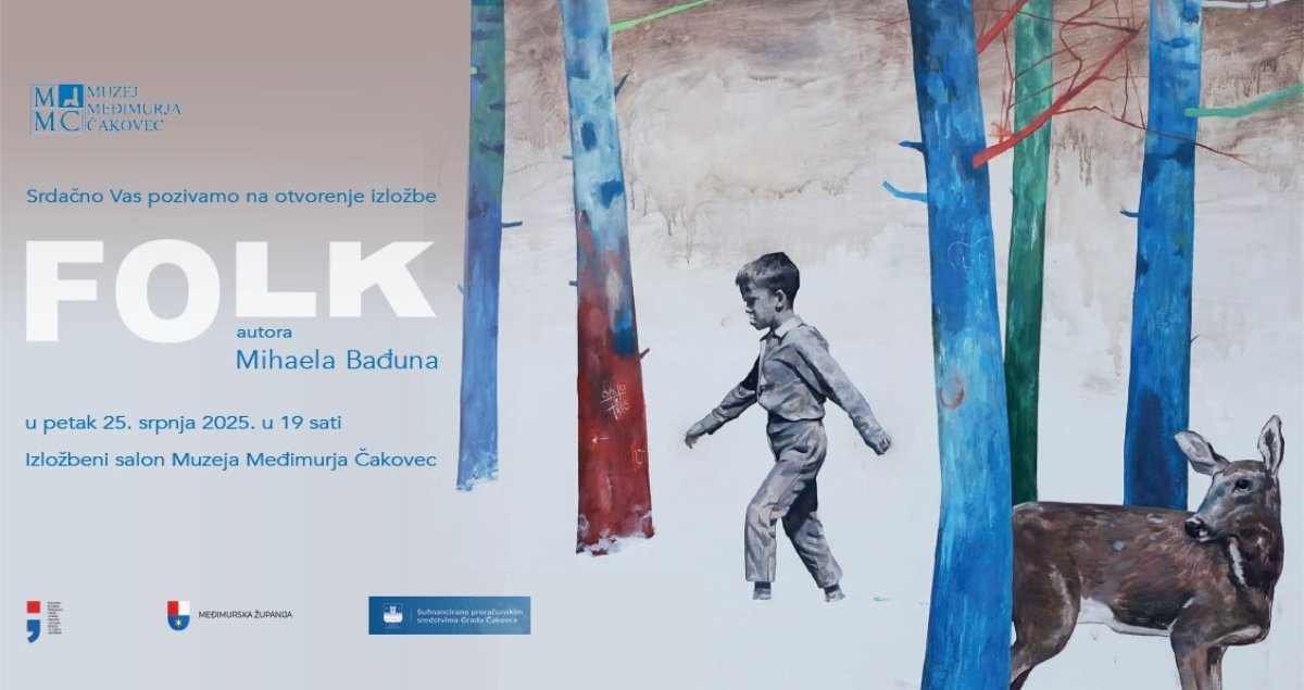 Muzej Međimurja Čakovec ugošćuje mladog varaždinskog umjetnika Mihaela Bađuna koji će se predstaviti najnovijim ciklusom “Folk” temeljenom na etnografskom ishodištu priča njegovih bake i djeda. Otvorenje izložbe je u petak, 25. srpnja 2025. godine u 19 sati u Izložbenom salonu Muzeja Međimurja Čakovec.