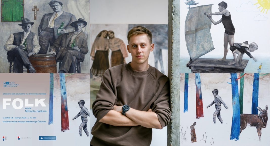 Muzej Međimurja Čakovec ugošćuje mladog varaždinskog umjetnika Mihaela Bađuna koji će se predstaviti najnovijim ciklusom “Folk” temeljenom na etnografskom ishodištu priča njegovih bake i djeda. Otvorenje izložbe je u petak, 25. srpnja 2025. godine u 19 sati u Izložbenom salonu Muzeja Međimurja Čakovec.