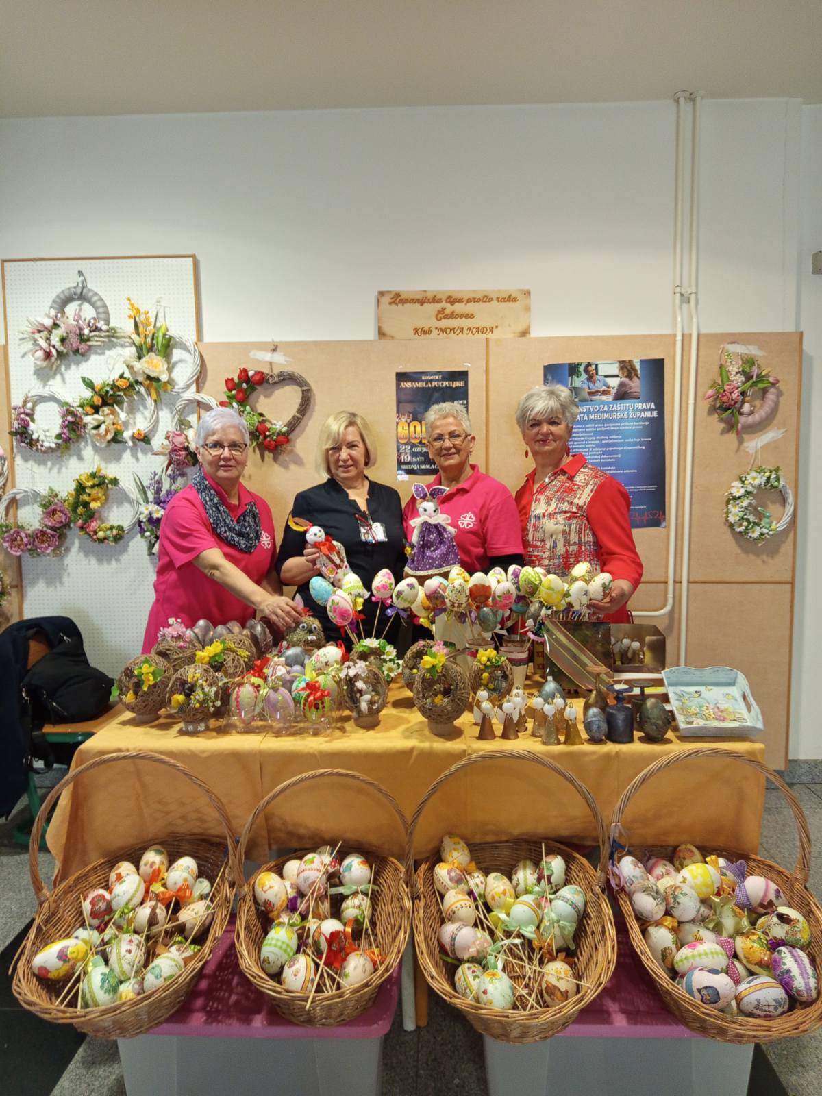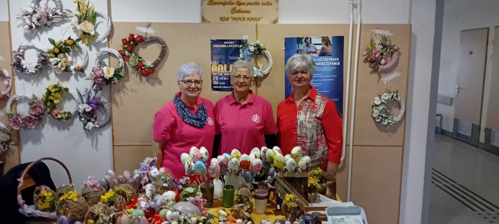 – Zadovoljne smo jer radile smo nešto novo, gnijezda od špage, imale smo 23 komada i samo 2 su ostala, prodale smo polovicu vijenca, ima još i jaja različitih i vjerujem da će danas i sutra biti gotovo sve prodano. Svi se zaustavljaju i govore kako su nam radovi lijepi čak je njih par pitalo tko to radi za nas. Ponosne smo na sebe, nas rad, nasu radionicu i vidjele da još uvijek možemo uraditi nešto dobro za dobrobit sviju nas – rekla nam je Jasna Štefić, predsjednica Kluba “Nova Nada”.