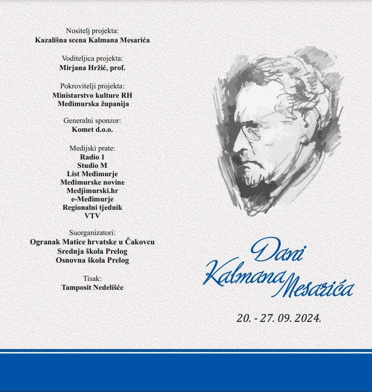 Ove se godine Dani Kalmana Mesarića održavaju od 20. do 27. rujna, nositelj ovog projekta je Kazališna scena Kalmana Mesarića, voditeljica projekta je profesorica Mirjana Hržić, a cijeli se projekt odvija pod pokroviteljstvom Ministarstva kulture Republike Hrvatske i Međimurske županije.