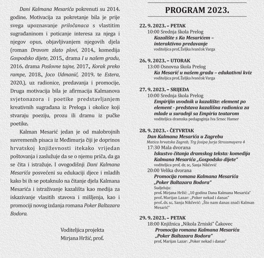PROGRAM „DANA KALMANA MESARIĆA“ 2023.