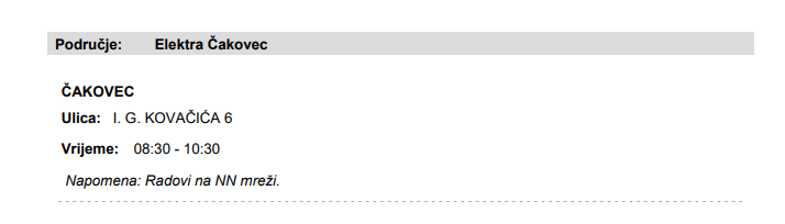 z HEP-a javljaju kako će u petak 15.ponedjeljak bez struje biti dijelovi Čakovca.