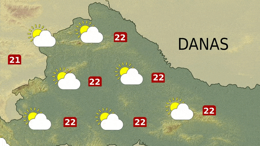 Danas će posvuda biti suho i djelomično sunčano. Vjetar većinom slab do umjeren jugozapadni. Jutro će biti prohladno uz mjestimičnu maglu i temperaturu od 5 do 8°C. Dnevni maksimalac će biti između 20 i 22 Celzijeva stupnja.