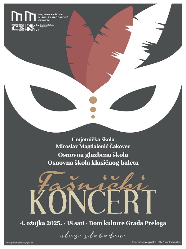 U Domu kulture Grada Preloga, „Fašnički koncert“ organizira Umjetnička škola Miroslav Magdalenić iz Čakovca. Koncert će se održati u utorak, 4. ožujka, a predstaviti će se učenici Osnovne glazbene škole te Osnovne škole klasičnog baleta.