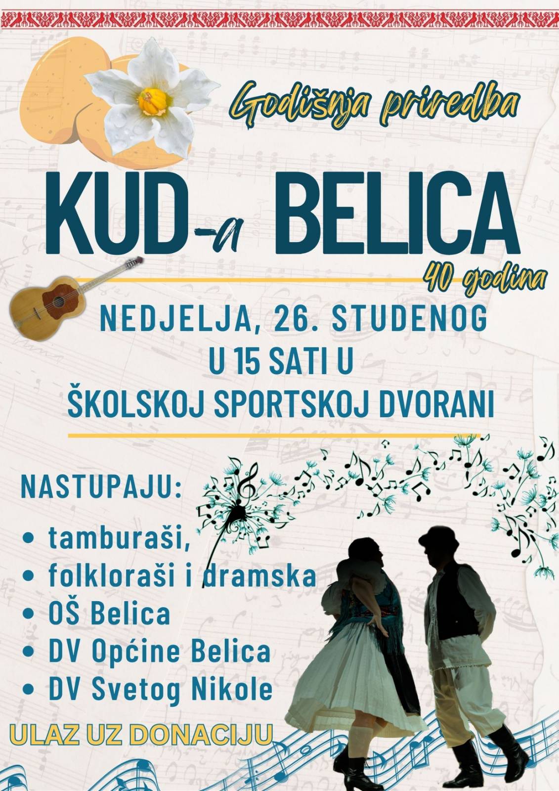-Pozivamo vas da nam budete gosti i podrška te da zajedno uživamo, plešemo, pjevamo, sviramo i smijemo se! Očekujemo Vas u nedjelju, u školskoj sportskoj dvorani s početkom u 15 sati! – poručuju iz KUD Belica.