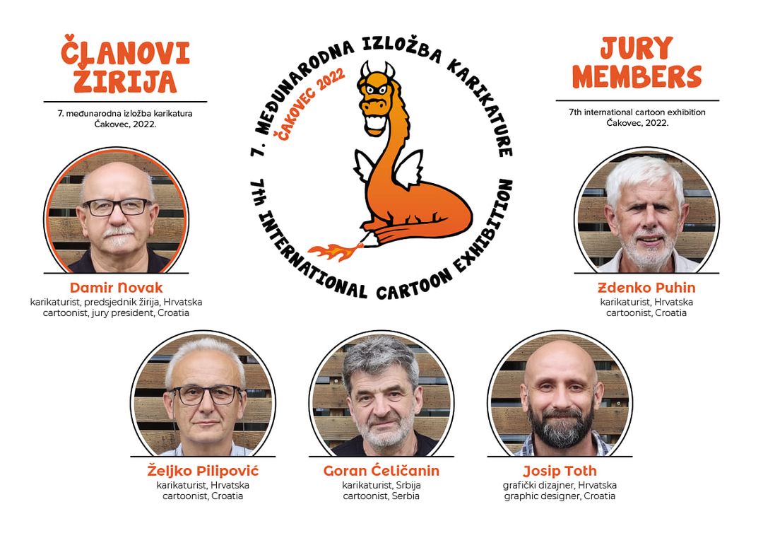 Njih su odabrali: Damir Novak, predsjednik žirija, Zdenko Puhin, karikaturist, Željko Pilipović, karikaturist, Goran Ćeličanin, karikaturist, i Josip Toth, dizajner.(na slici).