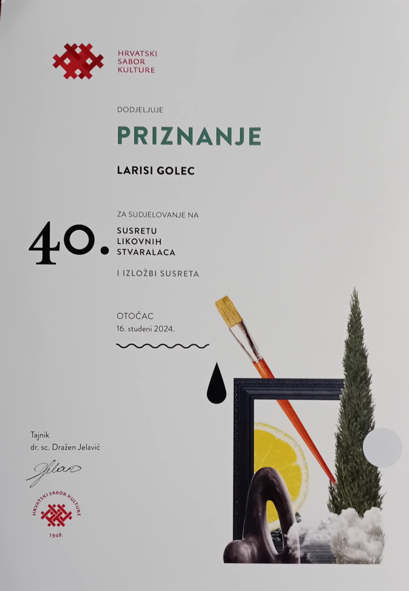 Za njezine radove znaju reći kako nam nude “nestvarne” akvarele koja zasigurno ostavljaju bitni i neizbrisiv trag na Hrvatskoj likovnoj sceni. I tako godinama…, a za ovu godinu ona je izdvojila sudjelovanje na 40. susretu likovnih stvaralaca u Otočcu (16.11.) koji je organizirao Hrvatski sabor kulture.