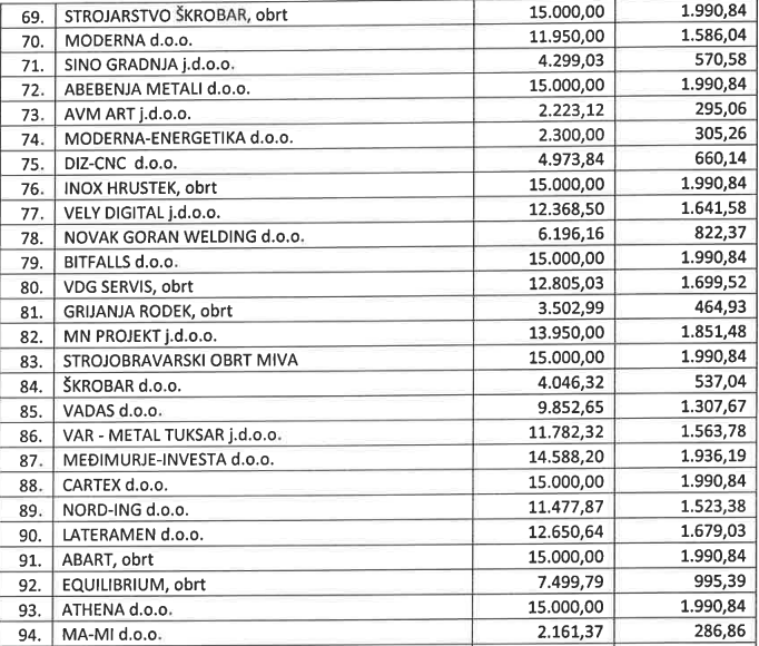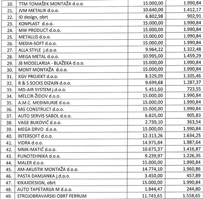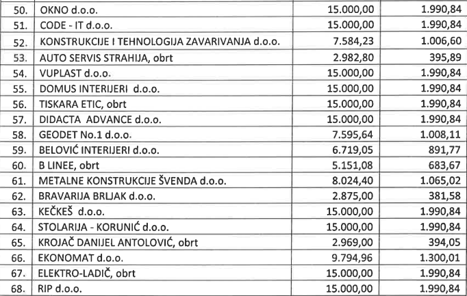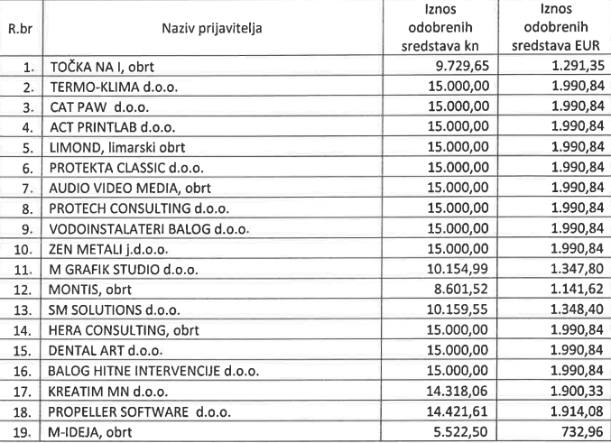 U nastavku pogledajte kompletnu odluku i popis svih malih tvrtki i iznos bespovratnih sredstava koje su dobile.