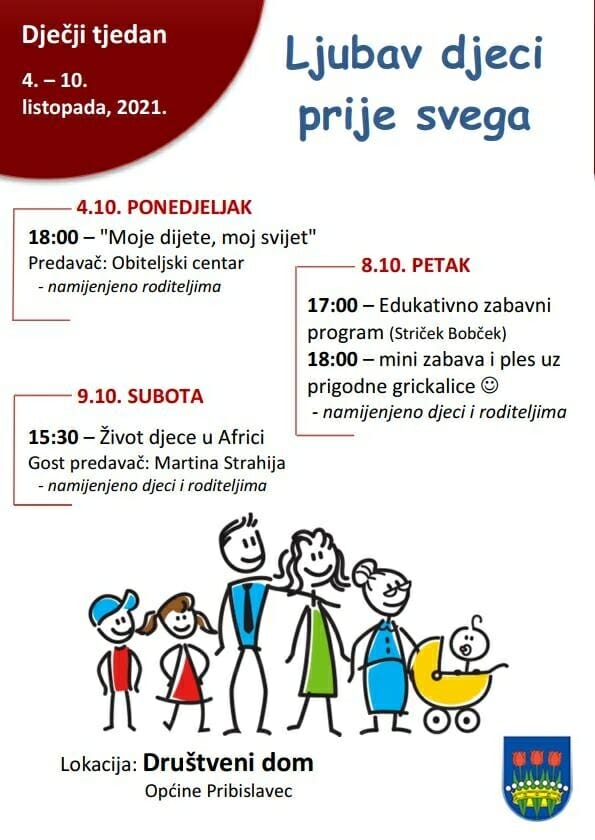 Sljedeći tjedan u Društvenom domu u Pribislavcu imati ćete prilike prisustvovati radionicama i predavanjima koje su namijenjene djeci i roditeljima.