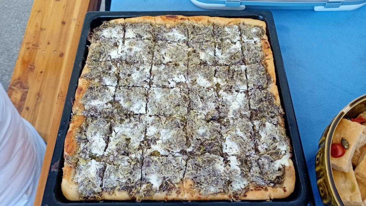 „To vam je dizano tijesto, a gore ide naribana tikva, mak, jaje i vrhnje,“ objašnjava. Kolač se često pekao u sezoni – kad se brao kukuruz, krumpir ili grožđe. „Jednostavno je, ali jako fino. Nema tko ga ne voli kad ga proba.“