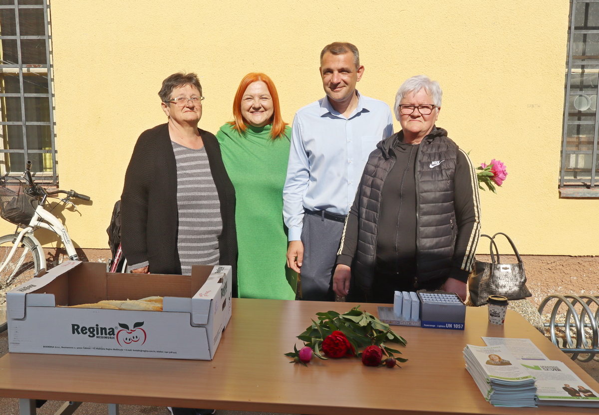Đurđica Slamek i Matija Posavec na druženju s mještanima na tržnici u Svetoj Mariji