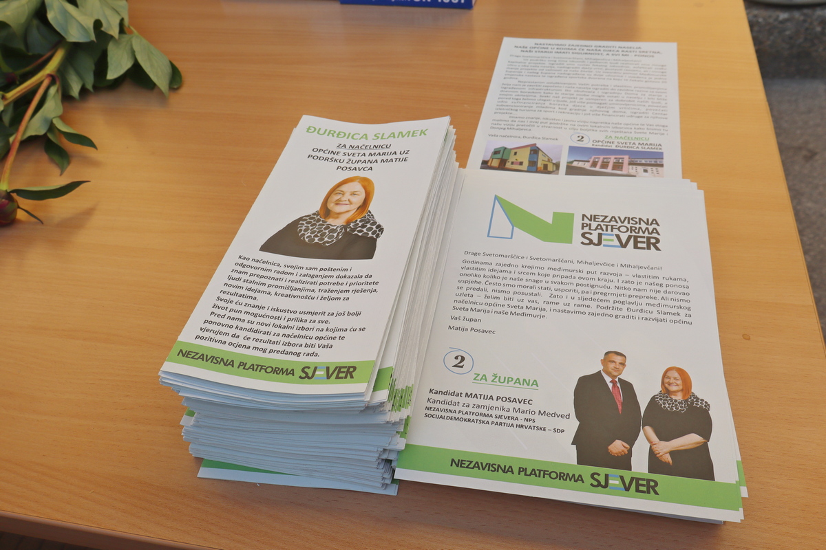 Načelnica Općine Sveta Marija Đurđica Slamek se u srijedu, 14. svibnja 2025. godine, na tržnici u Svetoj Mariji družila, zajedno sa županom Matijom Posavcem, koji joj je podrška na lokalnim izborima kao ponovnoj kandidatkinji za načelnicu, s mještanima i dijelila im letke, klipiće te reklamne materijale Nezavisne platforme Sjevera.