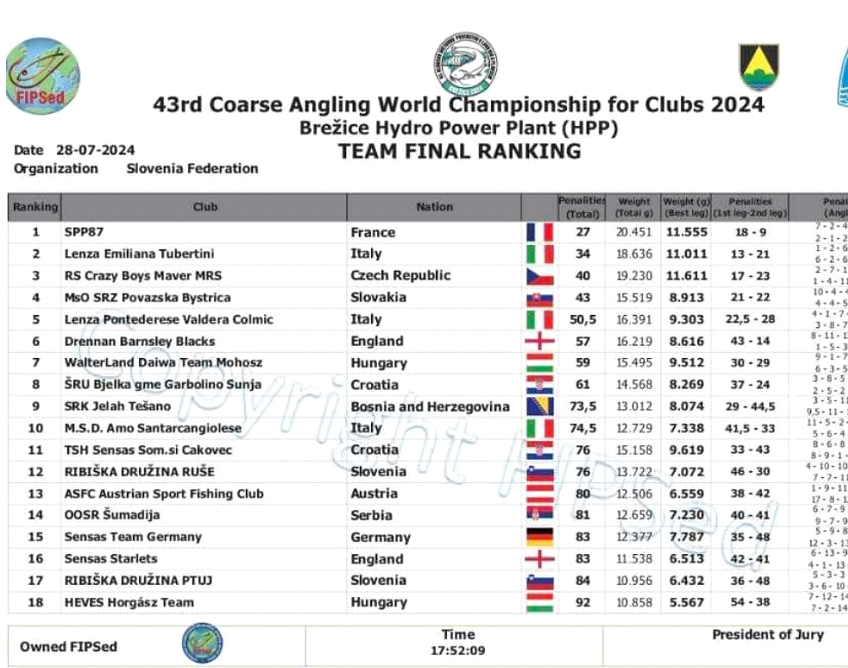 Treba napomenuti da je ovo najbolji ekipni plasman neke od međimurskih ekipa koje su sudjelovale na Svjetskim klupskim prvenstvima u sportskom ribolovu. Također treba napomenuti da je ovo 43. Svjetsko klupsko prvenstvo u sportskom ribolovu bilo Svjetsko prvenstvo s najviše ekipa ikad, čak 39, u povijesti sportskog ribolova.