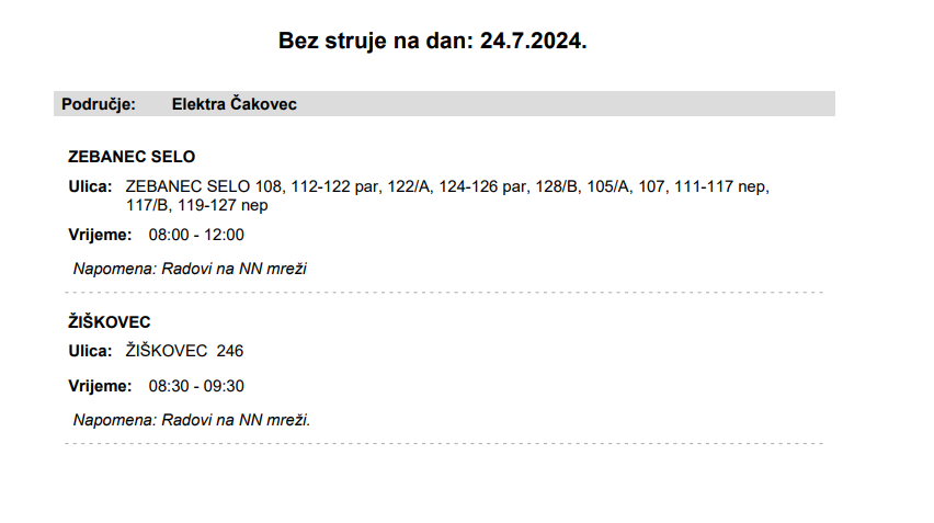 Iz HEP-a javljaju da električne energije 24. srpnja neće biti u Zebanec Selu i Žiškovcu.