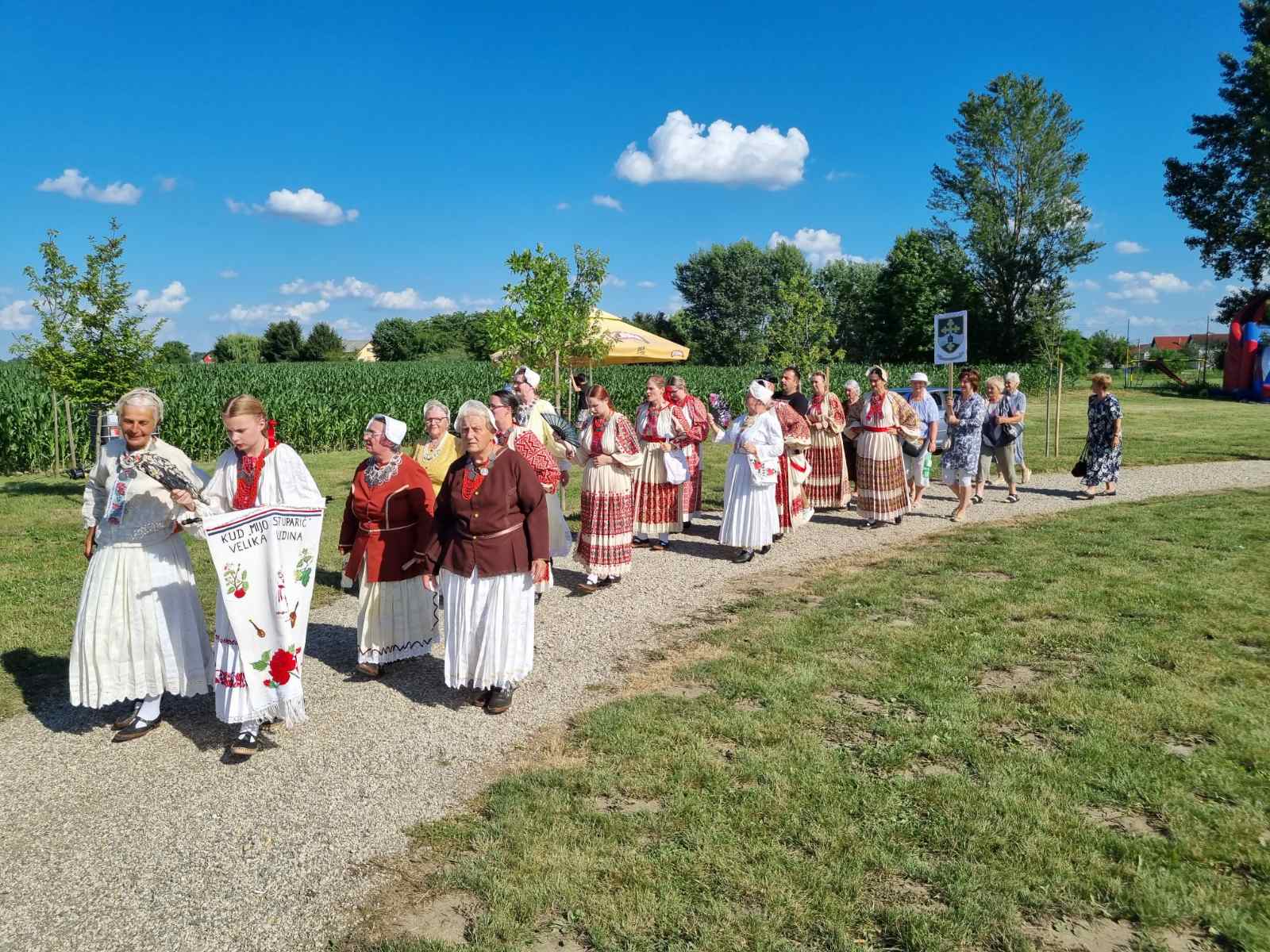 Kao što smo spomenuli, središnja točka posljednjeg dana proslave bio je Festival plesa, pjesme i glume. Mimohod sudionika krenuo je od Doma kulture Goričan, a po dolasku na Šudericu oni su pokazali svu ljepotu baštine različitih hrvatskih i mađarskih krajeva. Zbog velikog broja gostiju domaći KUD Goričan nije nastupio, već samo pokazao svoje bogate i vrijedne nošnje, a zatim su, zajedno s velikim brojem posjetitelja, uživali u atraktivnom programu. Sudjelovali su: KUD „Kaštel“ Pribislavec (folklor i dramska skupina), KUD Cret (folklorna i muška pjevačka skupina), KUD Strmec (folklor), KUD „Mijo Stuparić“ Velika Ludina (folklor) te gosti iz Mađarske Pjevački zbor „Ružmarin“ Murakeresztur i KUD Sumarton (folklorna i mješovita pjevačka skupina). Ugodno druženje nastavljeno je do kasno u noć uz Tamburaški sastav „Vragolani“.