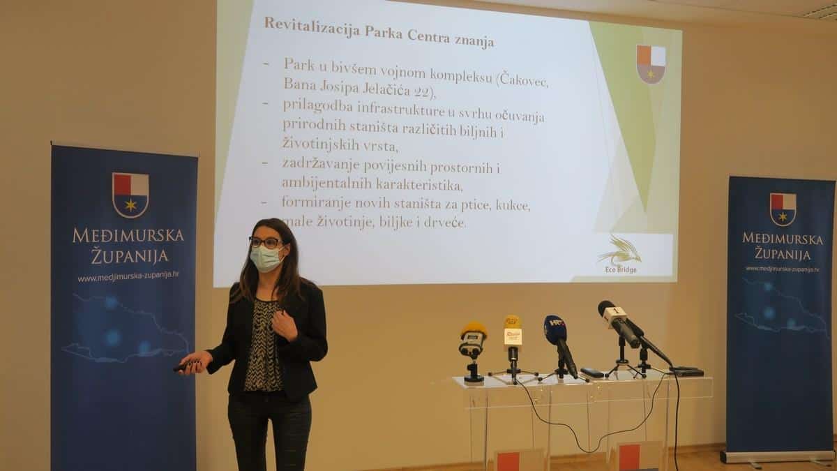 Zahvaljujući projektu izvršit će se revitalizacija parka u Centru znanja uvažavajući povijesne, prostorne i ambijentalne karakteristike. Uredit će se nove pješačke staze, zasaditi novo zelenilo i cvijeće. Prostor će se opremiti urbanom opremom, postavit će se pametne klupe i nova javna rasvjeta, vodeći pri tome računa o sinergiji s biljnim i životinjskim svijetom na tom području. Aktivnosti projekta predstavila je koordinatorica projekta koji provodi Međimurska županija Valentina Biševac, naglasivši da će se infrastruktura prilagoditi u svrhu očuvanja prirodnih staništa različitih biljnih i životinjskih vrsta.