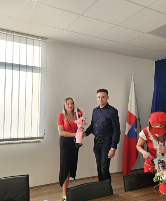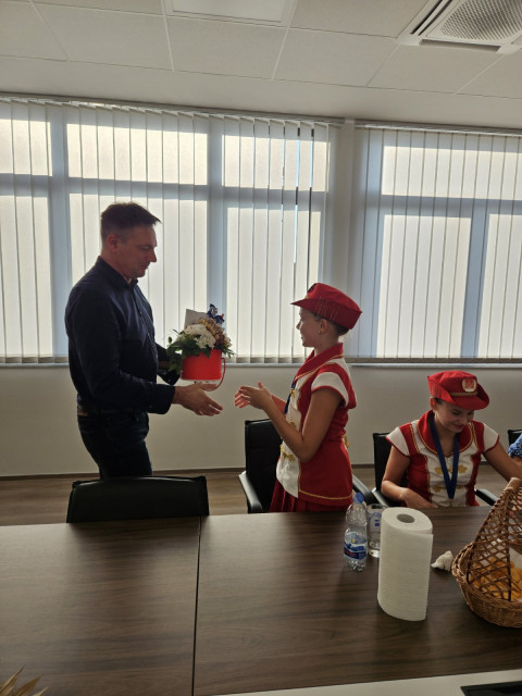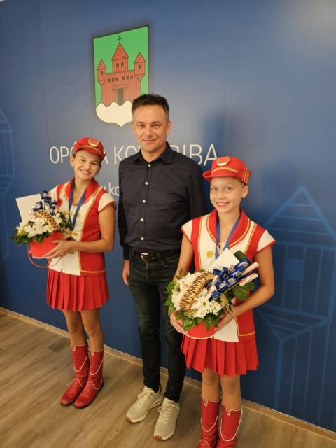 Zlatne mažoretkinje, njihove trenerice Martu Vojvoda i Martu Matulin te predsjednicu udruge Kristinu Čižmešija, tom je prigodom ugostio načelnik Dario Friščić uručivši im prigodne poklone i čestitke.