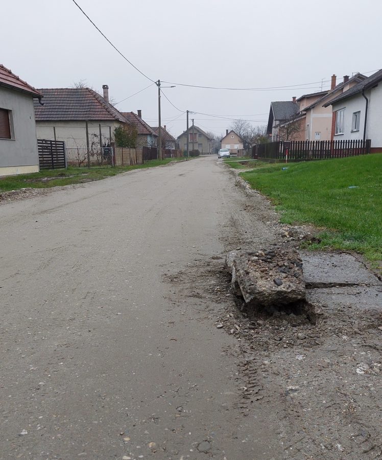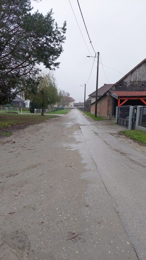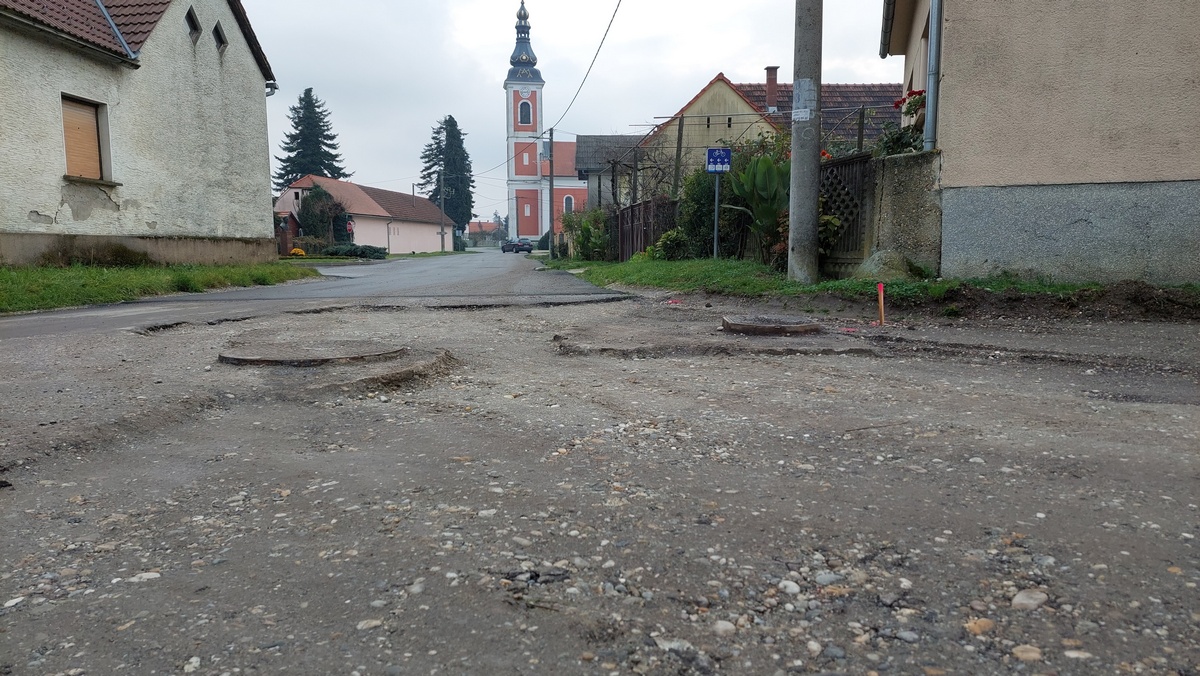 Posljednjih nekoliko mjeseci radilo se tu i tamo i to prilično hektično – nešto se krene raditi, pa se ne završi, ostavi se raskopano, s rupama ili izbočinama, a kiša koja pada ovih dana može prekriti i stvarne dubine rupa. Cesta se nadopuni podlogom i izravna za asfaltiranje, no zatim ju tjednim nitko ne asfaltira. Traktori na njoj naprave rupe i cesta će se morati ponovno pripremiti za asfaltiranje, odnosno mora se ponovno napraviti priprema. Mještani se prisjećaju i proljeća, kad su se postavili stupići za širinu cesta i zatim se tjednima nije ništa događalo, a sa stupićima u jamama igrala su se djeca, po selu su psi trčali sa stupićima u zubima i sl.