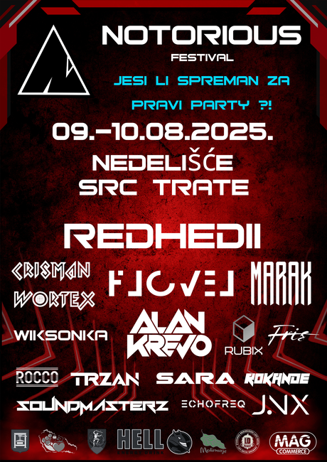 Organizatori pozivaju sve koji vole dobru glazbu, atmosferu i nova iskustva da im se pridruže 9. kolovoza.-Notorious festival nije samo glazbeni događaj – to je pokret koji briše granice, spaja ljude i donosi novu energiju u Međimurje. U subotu, 9. kolovoza, na jednom mjestu okupit će se pozitivna vibra, vrhunski beatovi, nezaboravni vizuali i ljudi koji žive za dobar provod, zaključuje Florijan.