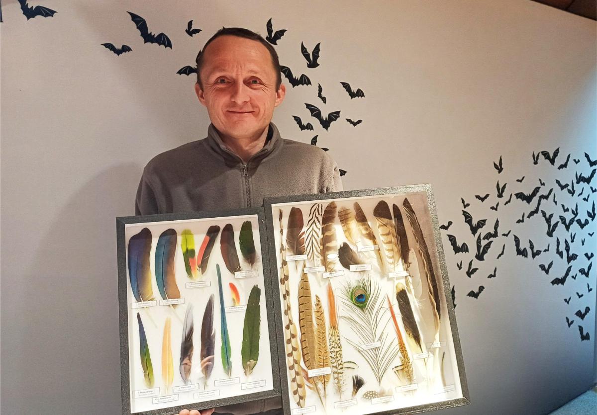 Čuvar prirode, Antonio Krušelj, pripremio je mini izložbu s više od 40 pera različitih ptičjih vrsta.