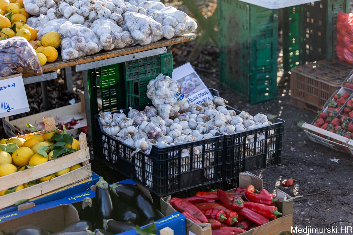 Češnjak domaći nuđen je po čak 8 eura kilogram. Batat je bio po 2 eura, a cvjetača 2 eura kg. Krumpir je bio od 0,40 do 1 euro kg.