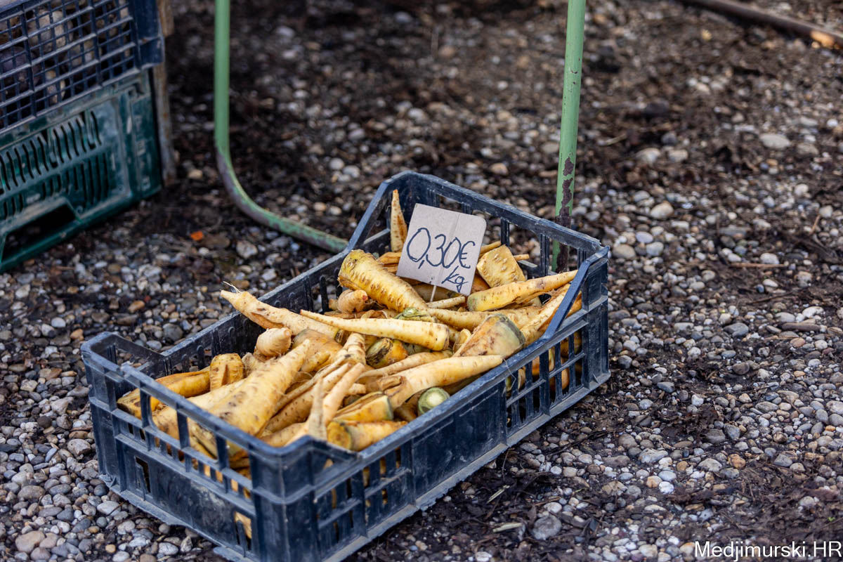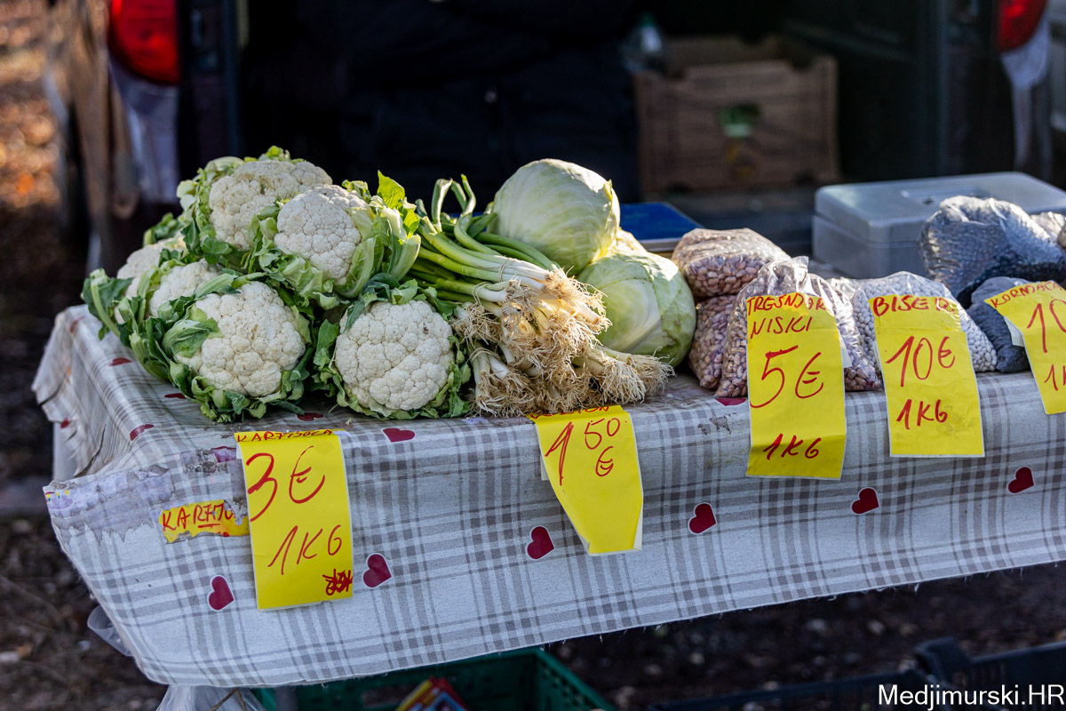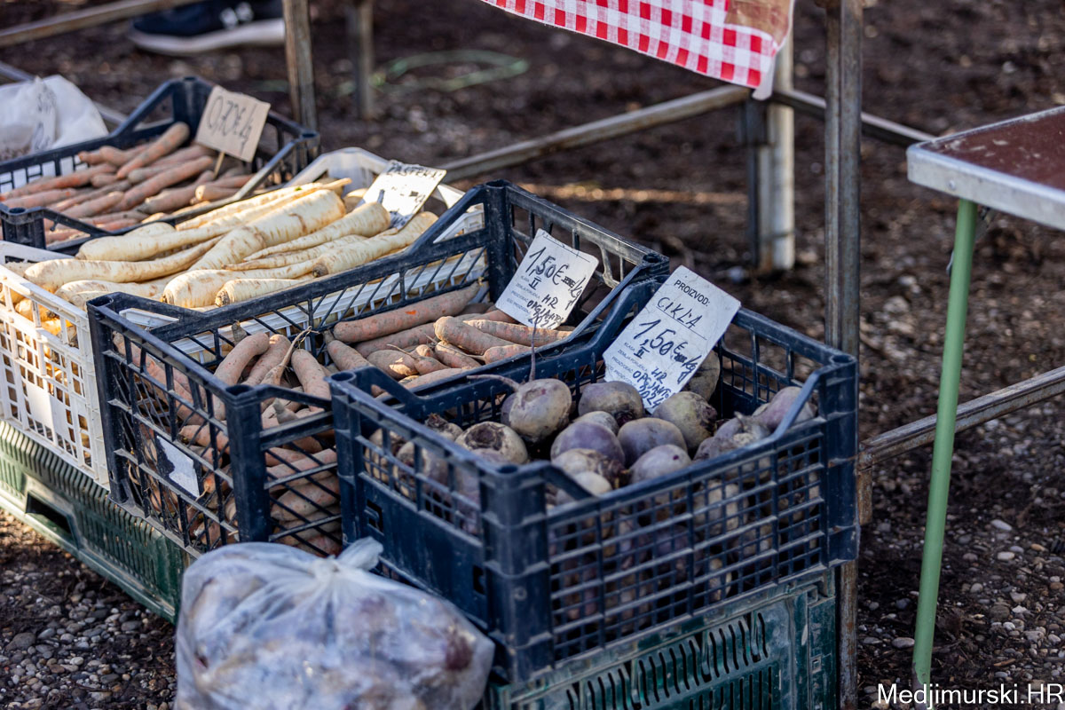Šampinjoni su nuđeni po 4 eura kilogram, mladi celer i peršin po 3 i 4 eura kg, pasternjak po 2,70 eura, a mrkva po 2 eura. Cikla je bila po 1,5 eura kg, slatki feferoni po 4, a ljuti čak po 7 eura kilogram.