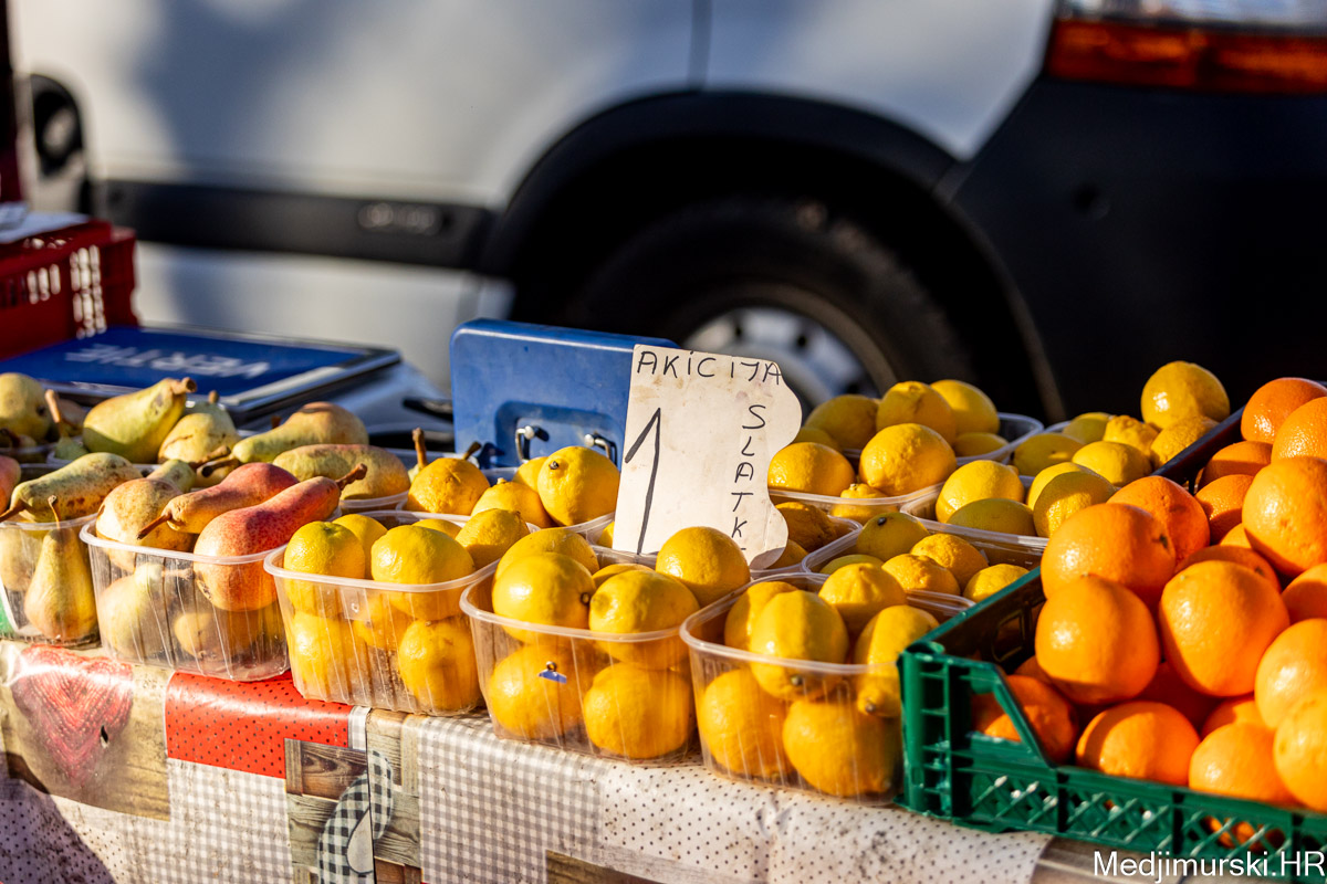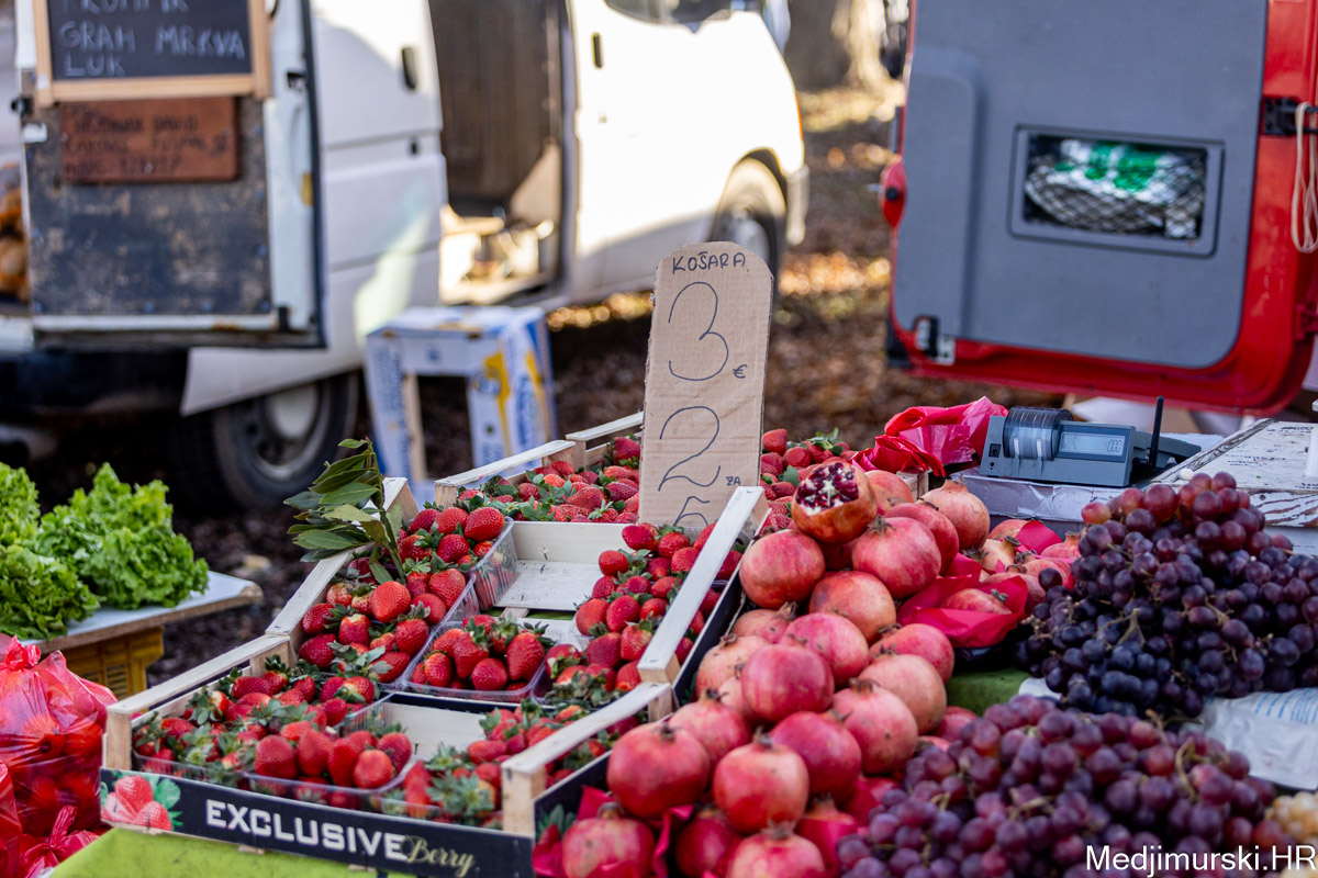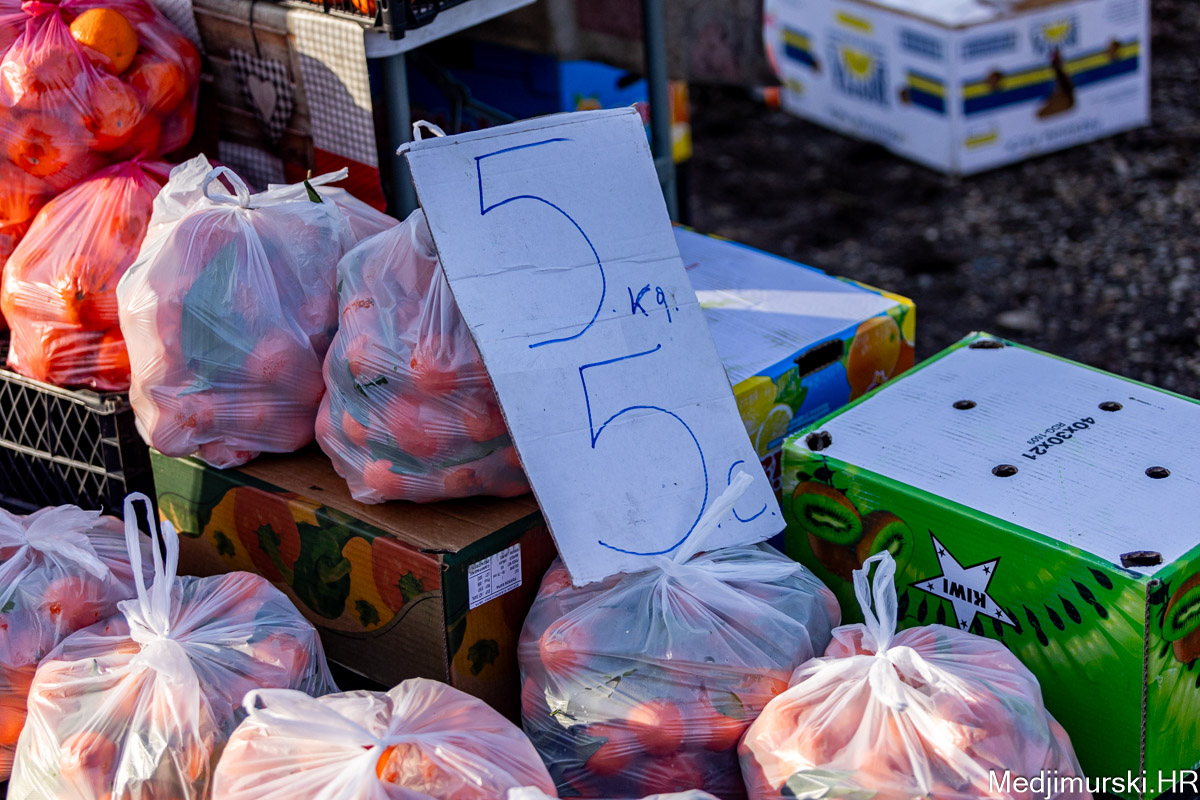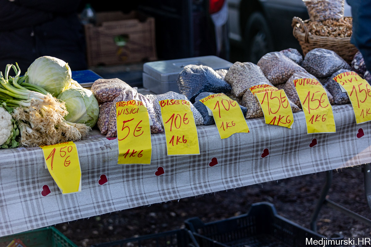 Šampinjoni su nuđeni po 4 eura kilogram, mladi celer i peršin po 3 i 4 eura kg, pasternjak po 2,70 eura, a mrkva po 2 eura. Cikla je bila po 1,5 eura kg, slatki feferoni po 4, a ljuti čak po 7 eura kilogram.