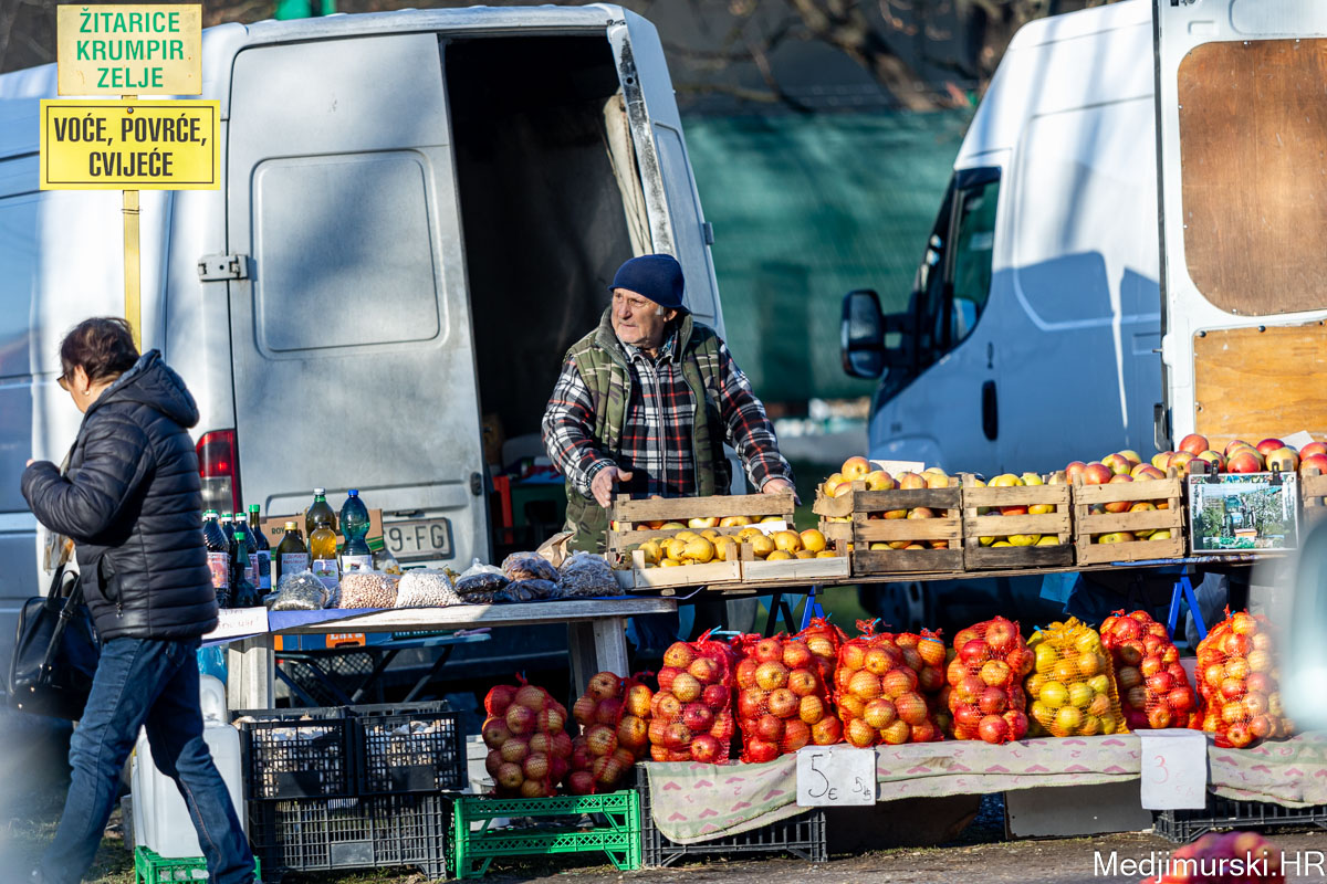 Danas je baš bilo lijepo na čakovečkom sajmu srijedom. Sunčan dan i temperatura viša od 10 stupnjeva Celzijusa, privukli su veliki broj prodavača i kupaca. A bilo je i onih koji su došli samo prošetati, vidjeti kakve su cijene i sresti drage prijatelje. Nudilo se sve: od špeka do repe, od voćnih i vinskih sadnica do zimske odjeće i obuće.