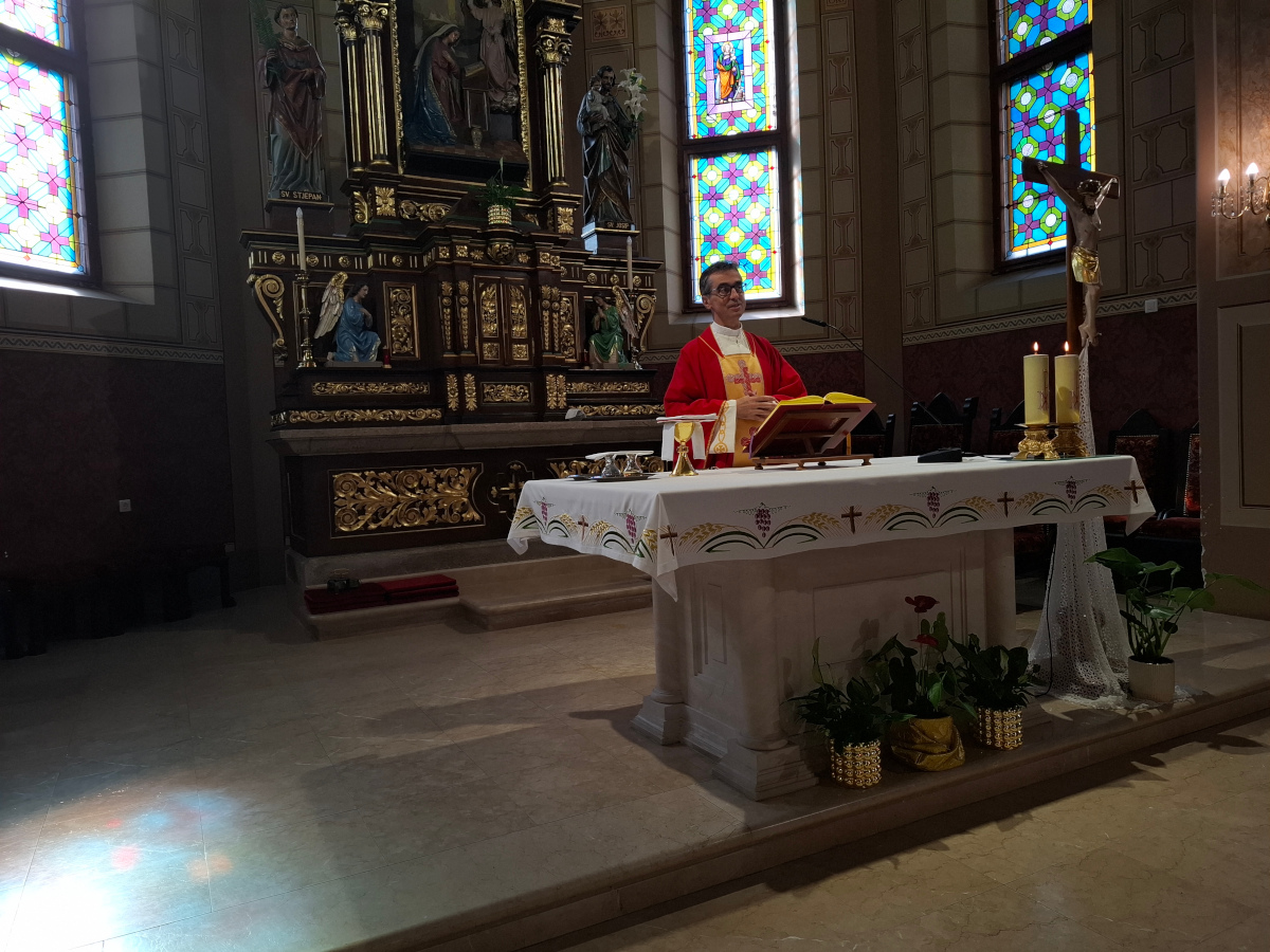 Prva postaja Studijskog putovanje je bila Velika Gorica gdje su sudionici studijskog putovanja nazočili Svetoj misi za Domovinu u crkvi Navještenja Blažene Djevice Marije, koju je predvodio vlč. Norbert Ivan Korprivec. Vlč. Koprivec je naš Međimurec koji je djetinjstvo proveo u Donjem Koncovčaku, Općina Selnica, a za svećenika je zaređen 27. lipnja 1993. godine u zagrebačkoj katedrali po rukama blagopokojnog kardinala Franje Kuharića. Mladu misu služio je u rodnoj župi Sv. Marka u Selnici 11. srpnja 1993.