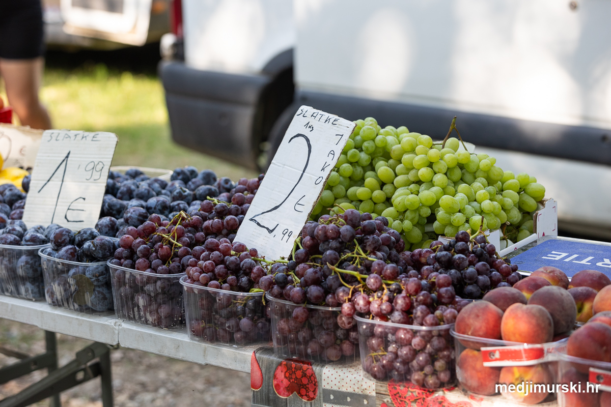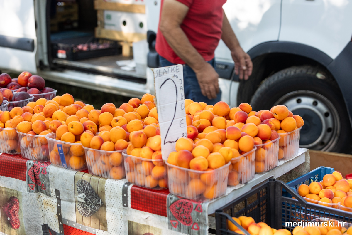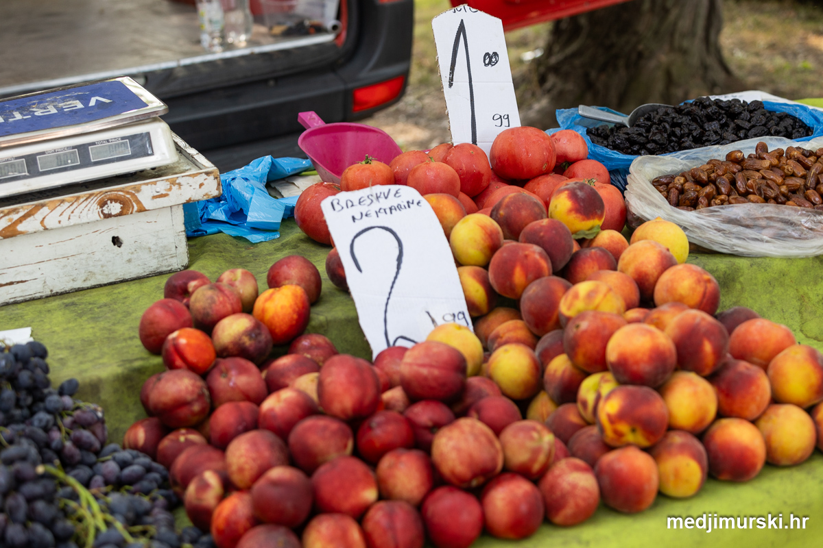 Marelice, nektarine i breskve nuđene su po 2 eura. Jabuke su bile po 1 euro kilogram, limun po 2, grožđe po 3, kruške po 1,5 i suhe smokve po 6 i 7 eura kilogram. Domaća jaja prodavana su po 1,5 eura 10 komada.