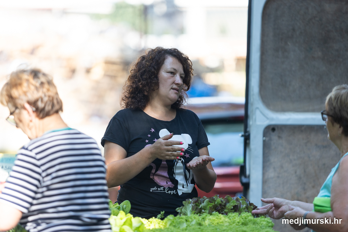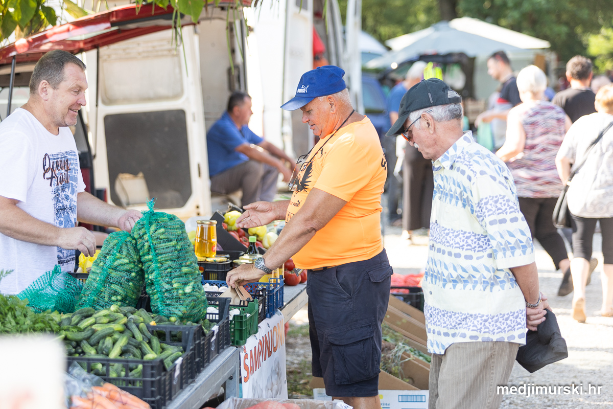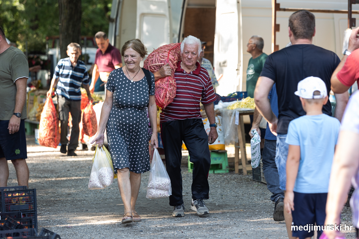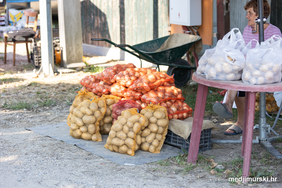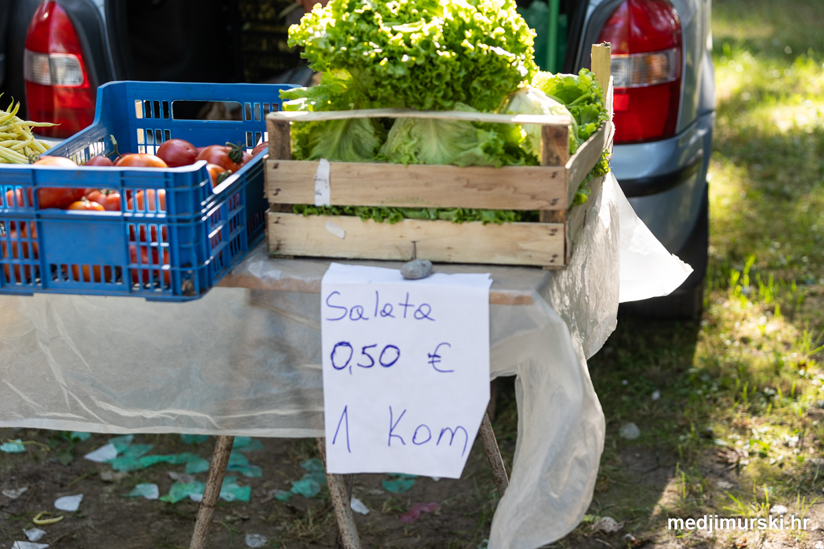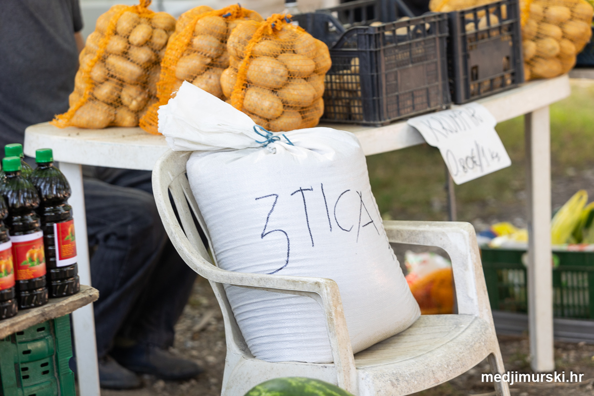 Da, da, cijene poljoprivrednih proizvoda na čakovečkom sajmu osjetno su pale u odnosu na prošlu srijedu. Mladi grah čak je upola jeftiniji. Neočišćen u vrećama prodavan je po 2 eura kilogram, a očišćen 5 eura kg. To je ista cijena kao i prošle godine.