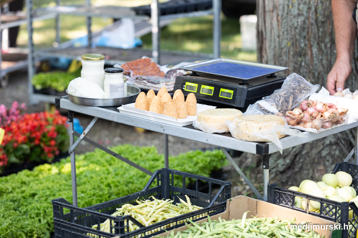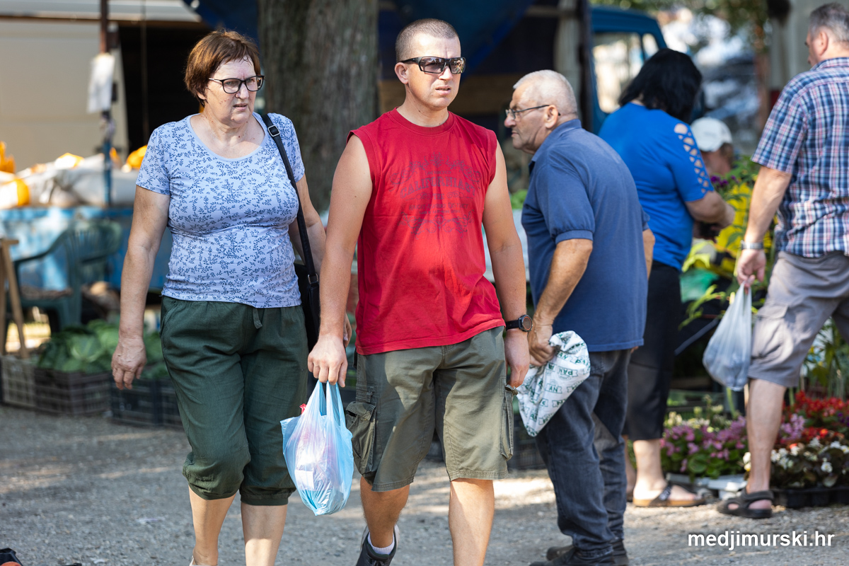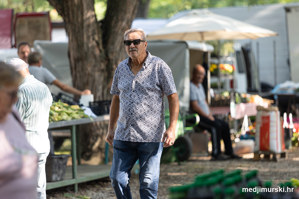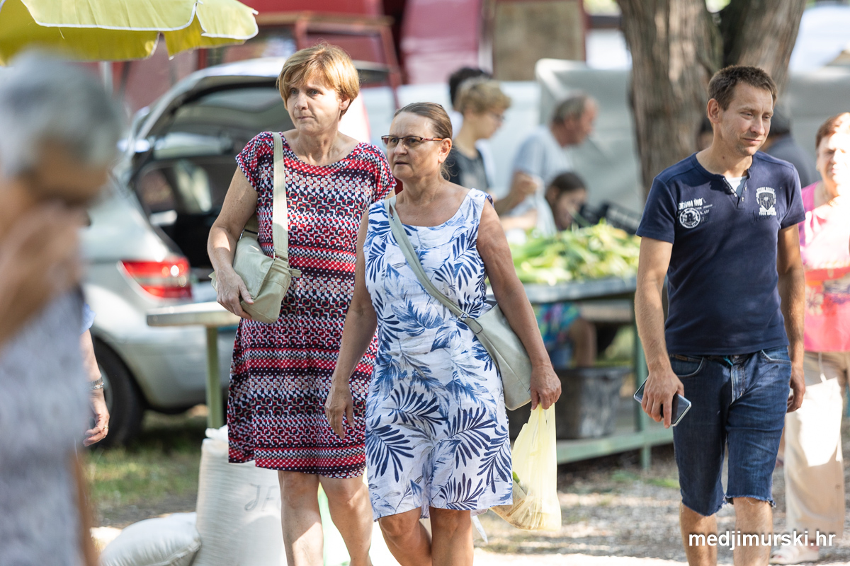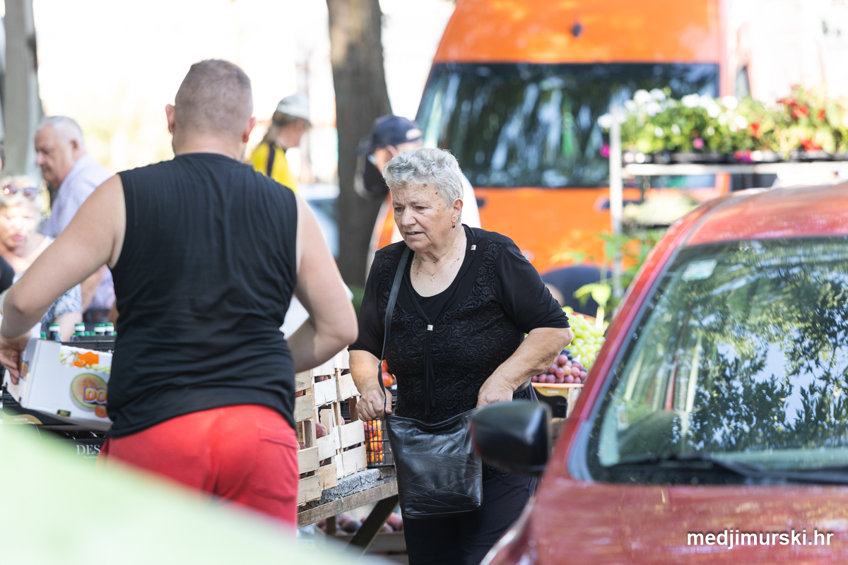 Da, da, cijene poljoprivrednih proizvoda na čakovečkom sajmu osjetno su pale u odnosu na prošlu srijedu. Mladi grah čak je upola jeftiniji. Neočišćen u vrećama prodavan je po 2 eura kilogram, a očišćen 5 eura kg. To je ista cijena kao i prošle godine.